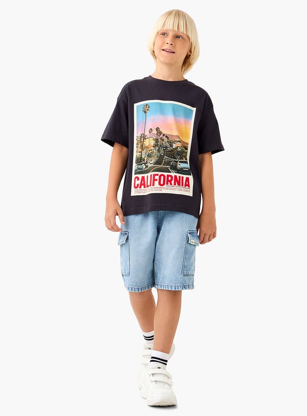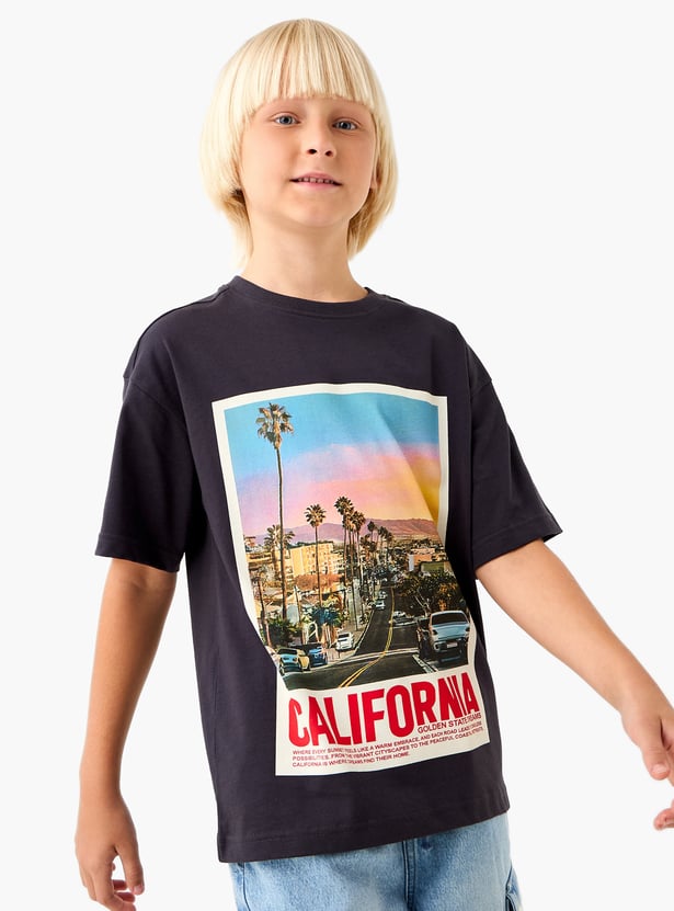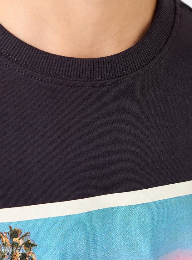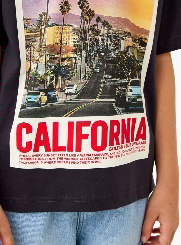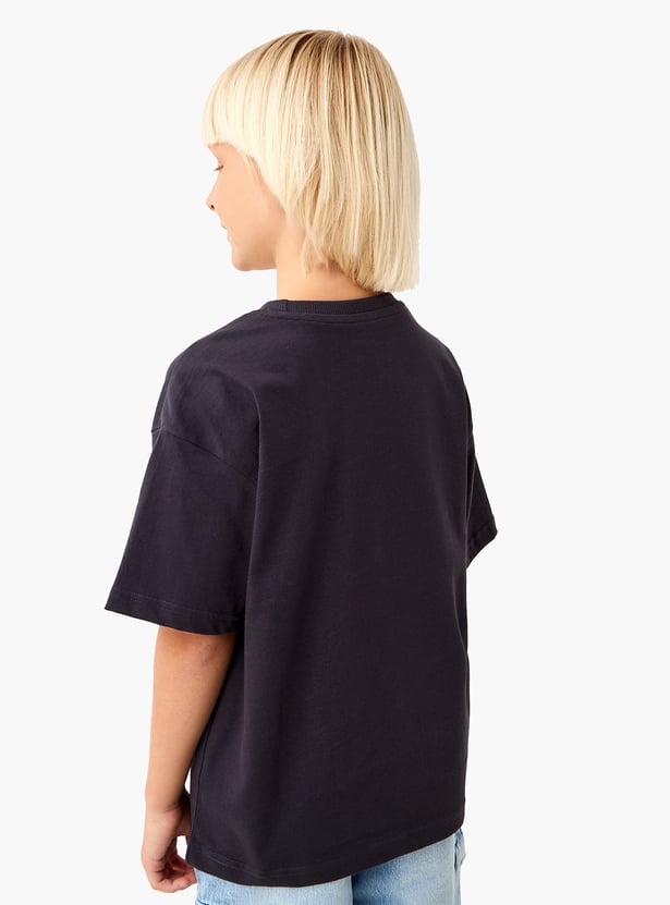 Juniors Graphic Print T-shirt with Short Sleeves