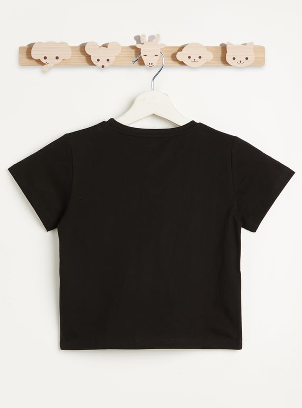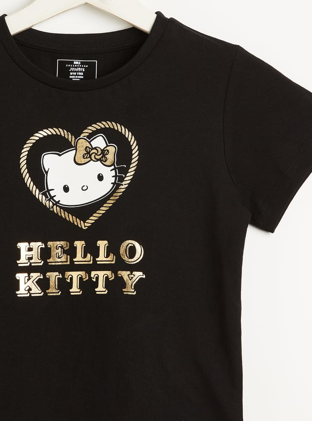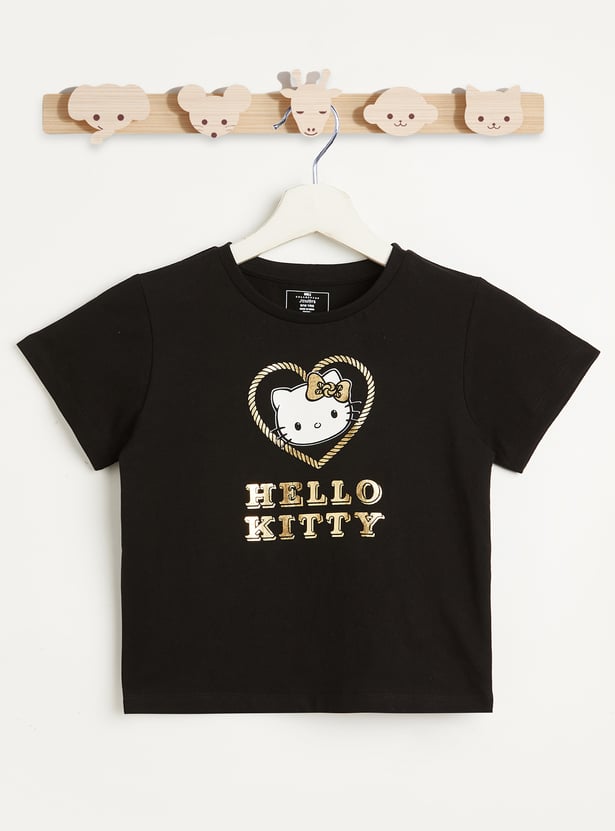 Add a sparkly touch to your kid's wardrobe with this t-shirt. Designed with a foil Hello Kitty print on soft, breathable fabric. A cute and comfy pick for playful outings and casual days!