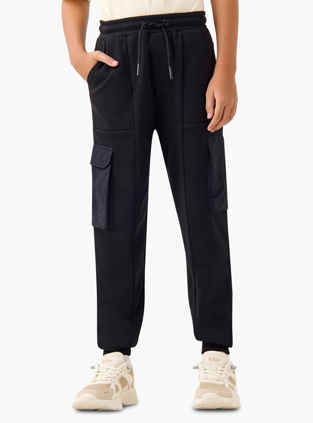 Juniors Solid Cargo Joggers with Drawstring Closure and Pockets