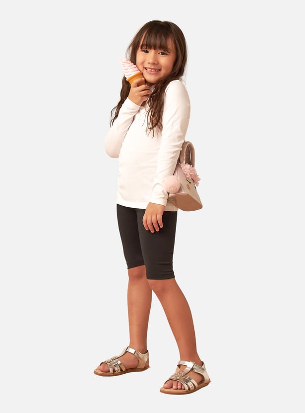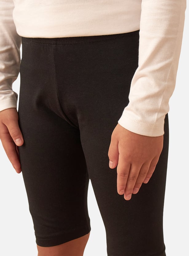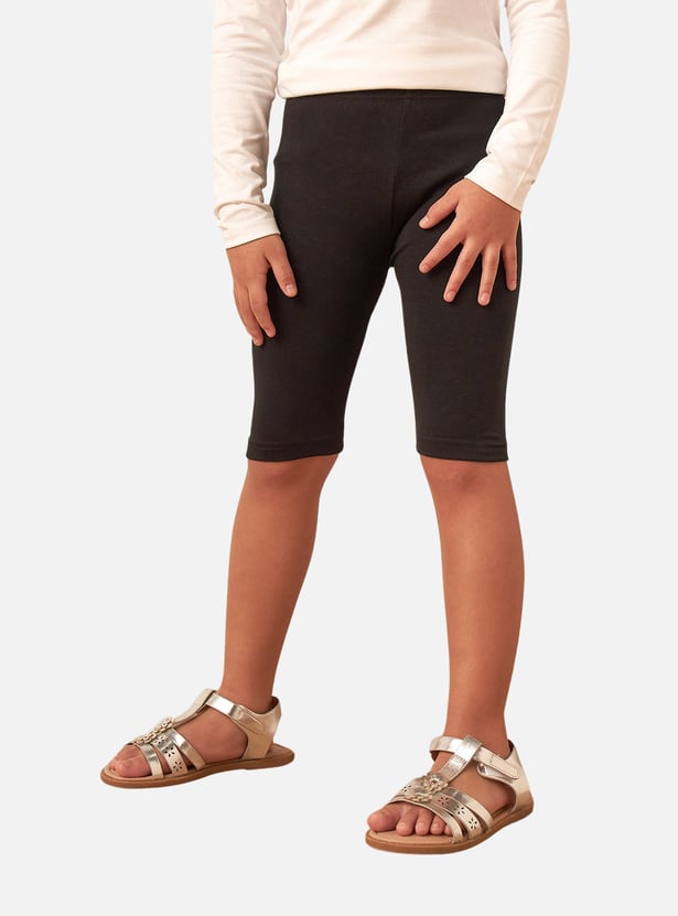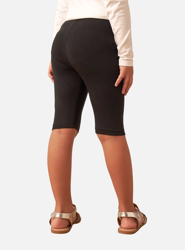 Complete your little girl's attire in a trendy and cool manner with this pair of shorts. A must-have pick, the shorts showcase knee-length styling and are crafted from soft cotton fabric.