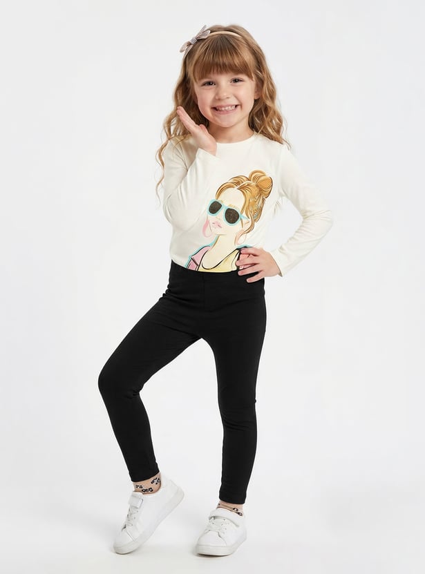 Juniors Solid Leggings with Elasticated Waistband