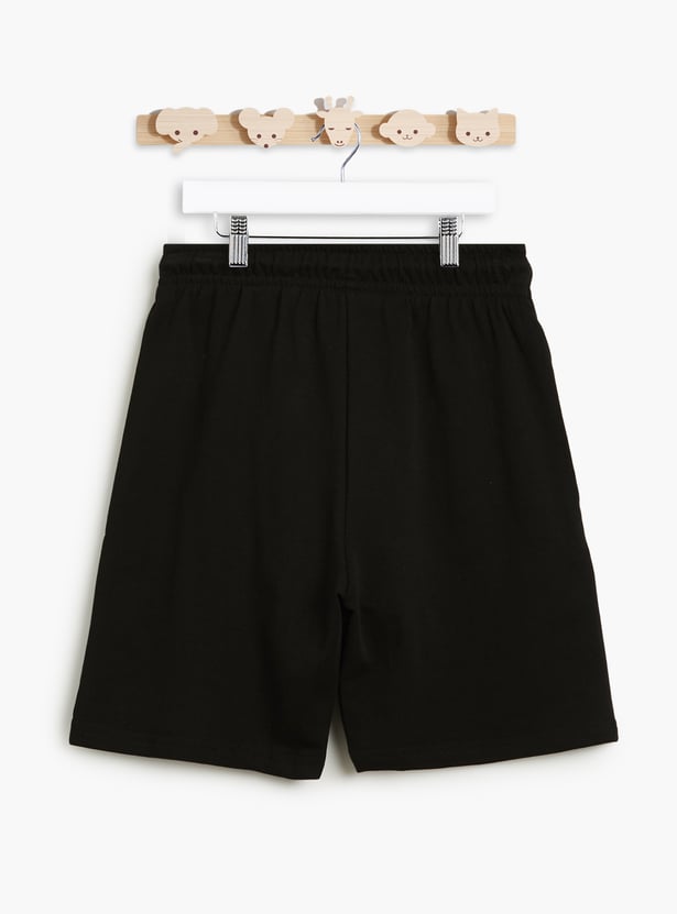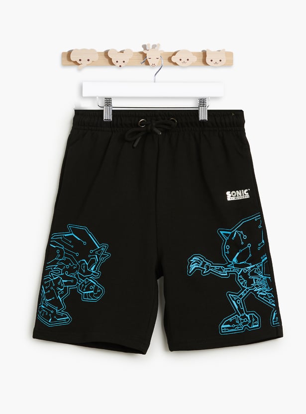 Zoom into action with these Sonic-themed black shorts featuring bold character outlines in foil print. Crafted from soft fabric with an elasticated waistband and adjustable drawstring for a comfy fit. It also features two front pockets for added convenience.