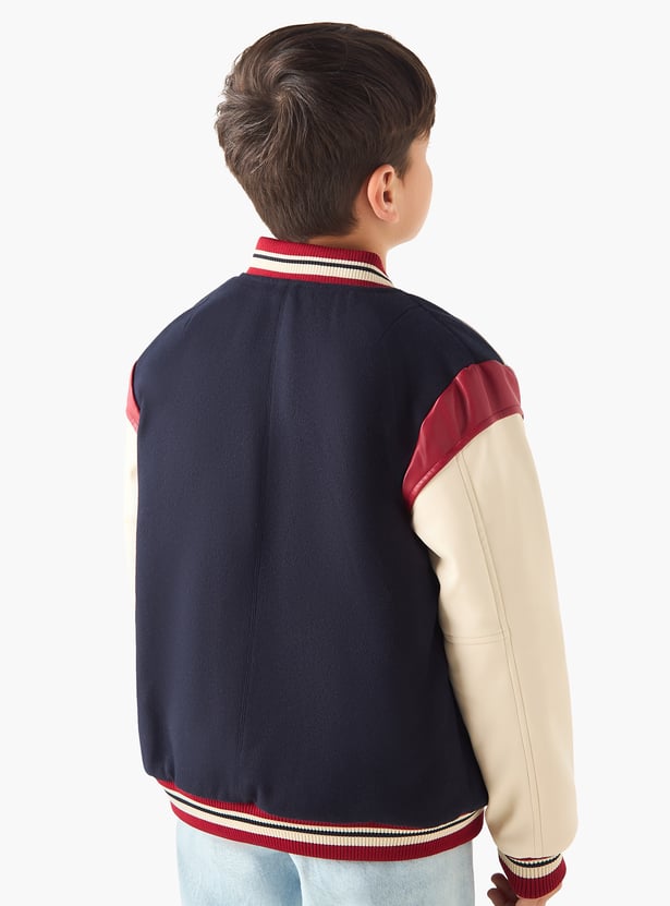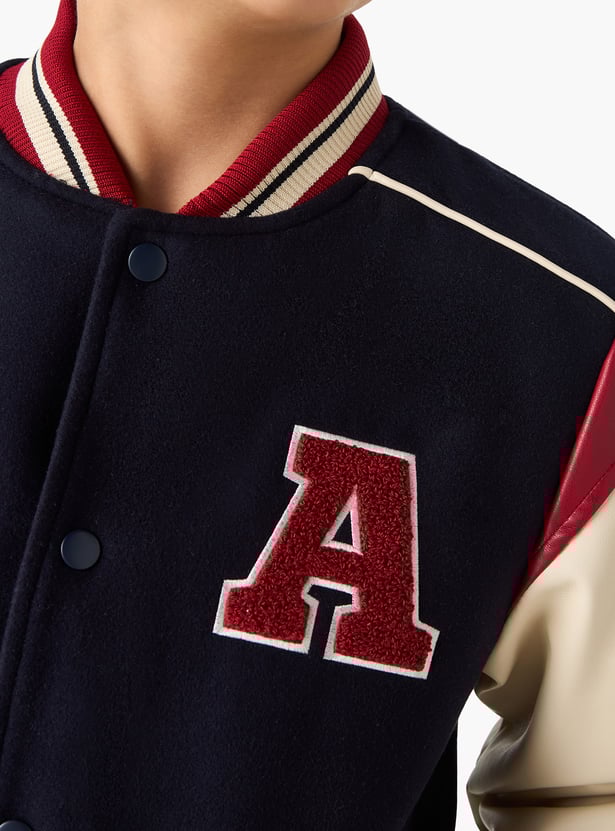 Let your boy make a bold style statement with the alphabet "A" applique heavy jacket. Designed for young trendsetters who love a personalized touch, this jacket features a standout alphabet applique on the front, adding a cool, custom vibe to a classic silhouette. Crafted with comfort and edge in mind, it boasts long sleeves, a button-up front, and ribbed trims for a snug, sporty fit.