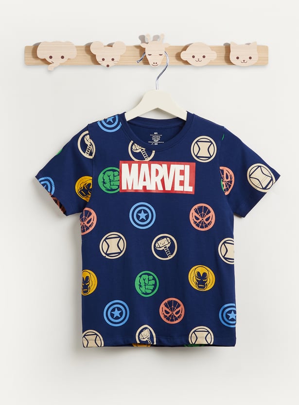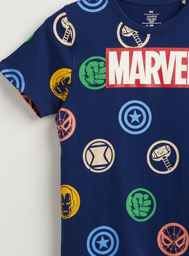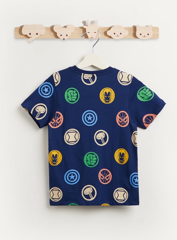 Juniors Avengers Print T-shirt with Short Sleeves