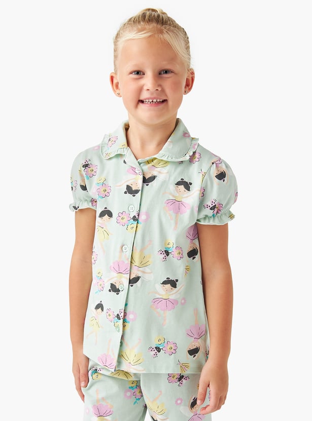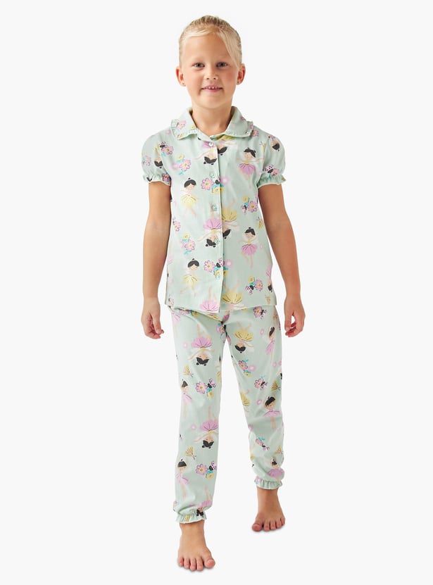This charming printed pyjama set ensures a comfortable night's sleep for your little one. Crafted from soft, breathable fabric, these pyjamas feature an all-over ballerina print. The elasticated waistband and cuffed sleeves offer a secure and snug fit. This delightful pyjama set is perfect for sweet dreams.