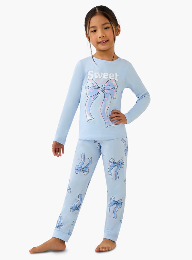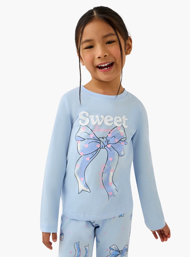 Juniors Bow Print T-shirt with Joggers Set