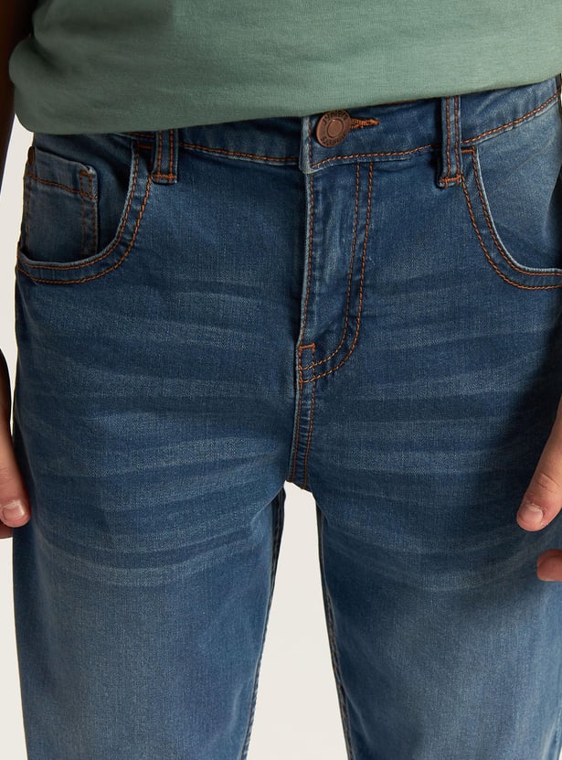 Bring trendy style to your boy's casual wardrobe with these denim jeans. Crafted in a conventional design with button closure, these jeans are high on comfort and gentle on the skin. The pair comes with multiple pockets for added convenience.