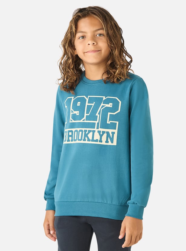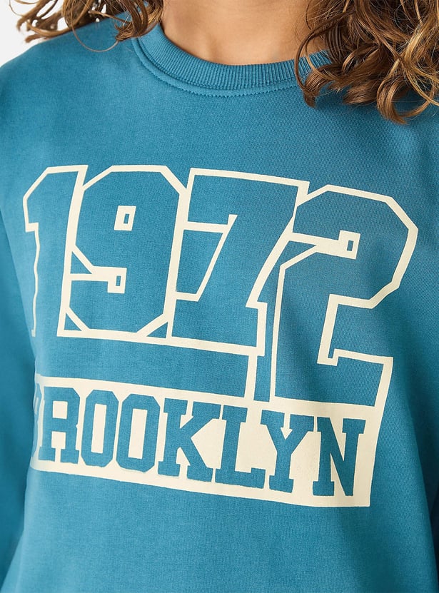Juniors Brooklyn Print Sweatshirt with Crew Neck and Long Sleeves