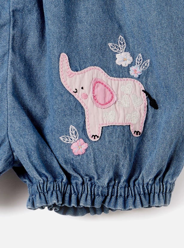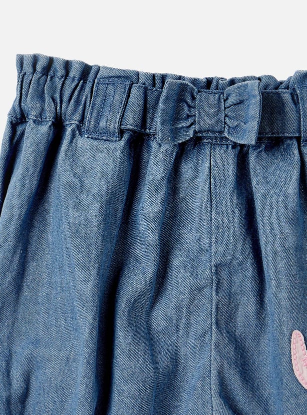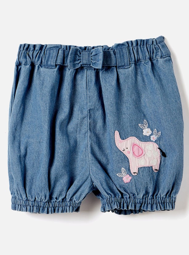 Juniors Elephant Applique Denim Shorts with Bow Detail
