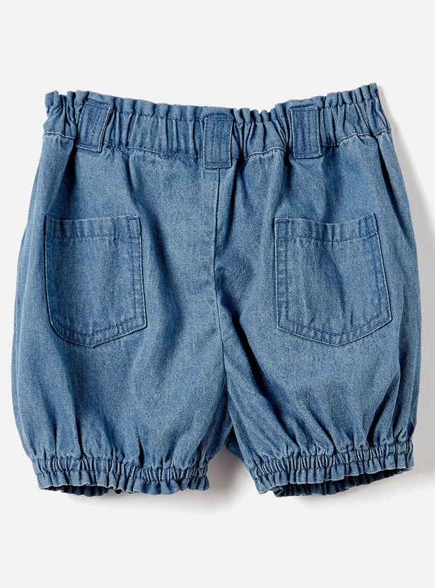 These denim shorts from Juniors feature an elephant applique detailing and are a casual staple for your little girl's wardrobe. Made from soft cotton, they're perfect for everyday wear. The bottoms come with an elasticated waistband with a bow detail, and pockets with a regular fit that ensures comfort and allows for plenty of movement.