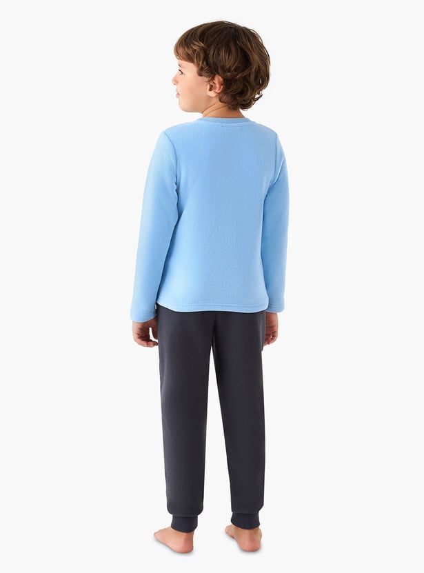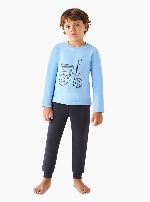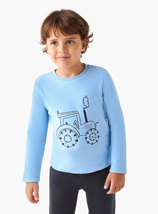 Ensure a comfortable night's sleep for your young one with this charming nightwear set. Crafted from soft material, this two-piece ensemble provides exceptional warmth, making it ideal for colder evenings. The long-sleeved T-shirt features a delightful tractor embroidery, while the coordinating pyjamas offer a snug fit, ensuring ultimate comfort throughout the night. This set is perfect for relaxed lounging or sleeping.