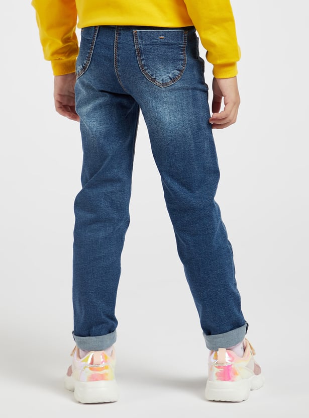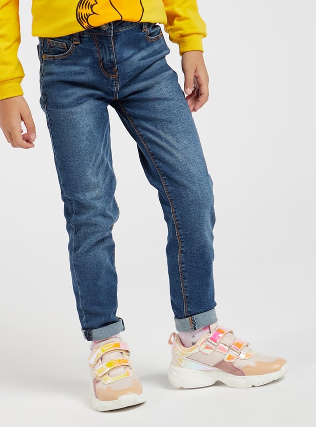 Make sure your little girl looks her best at the next casual event by getting her these washed jeans. These jeans have convenient pockets for added functionality. The button and zip closure render a good fit.
