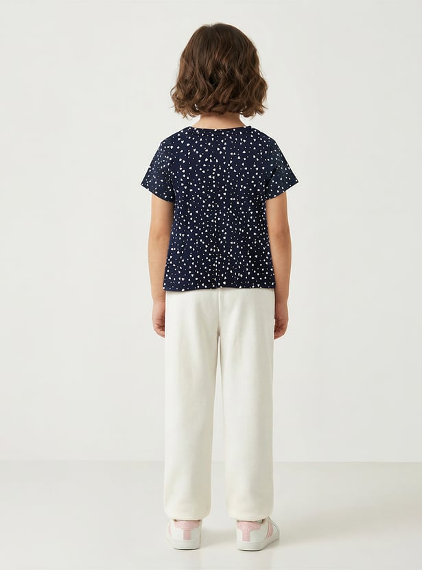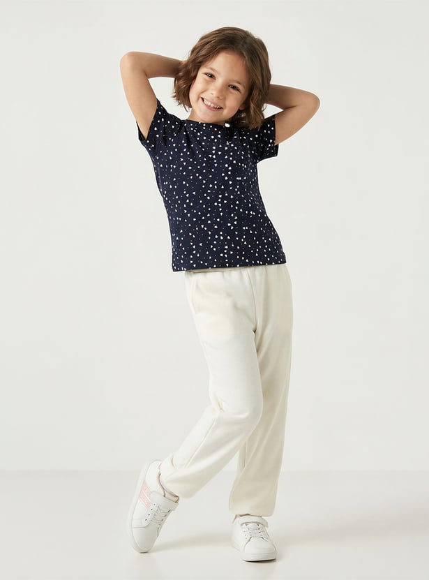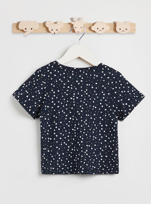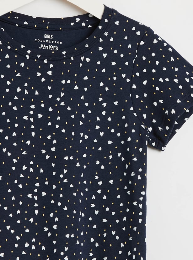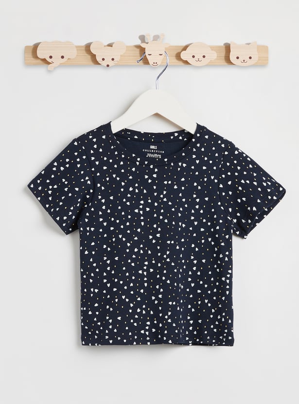This t-shirt combines playful charm with everyday comfort. Featuring a vibrant heart print, this t-shirt adds a fun touch to your daughter's wardrobe. Designed with short sleeves and a classic round neck, it offers a relaxed feel that ensures all-day comfort. Made from soft, breathable fabric, this t-shirt is perfect for casual outings. Ideal for young girls, this t-shirt is a delightful addition to their casual wear collection.