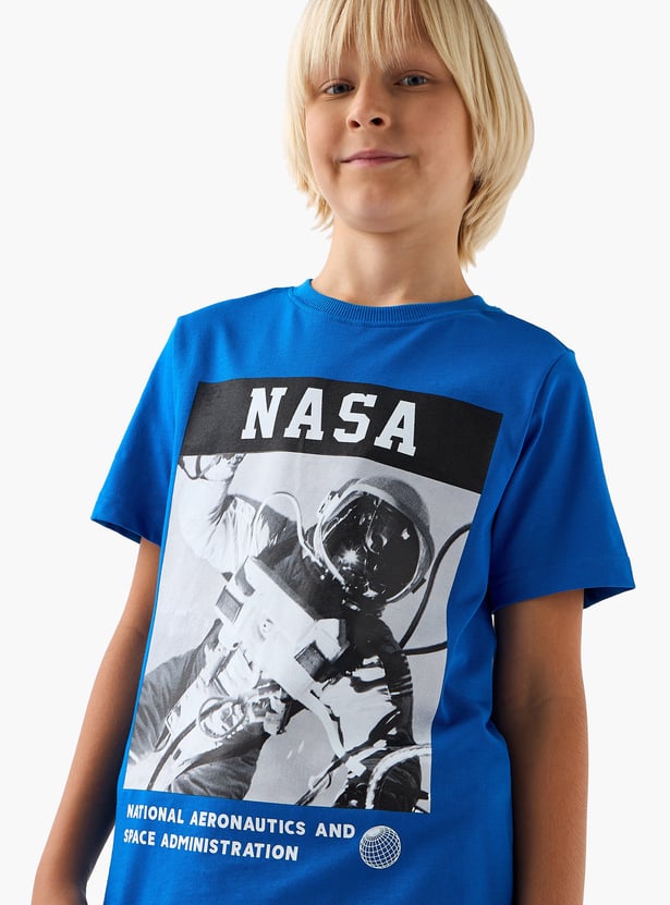 Juniors NASA Graphic Print Crew Neck T-shirt with Short Sleeves