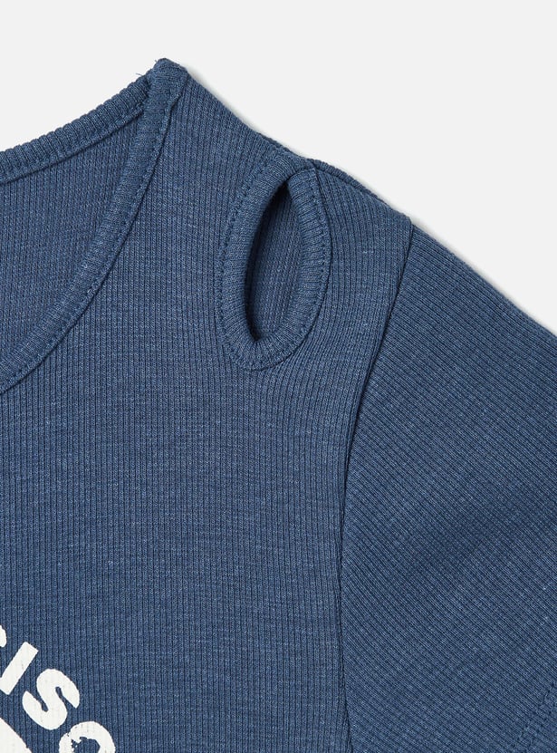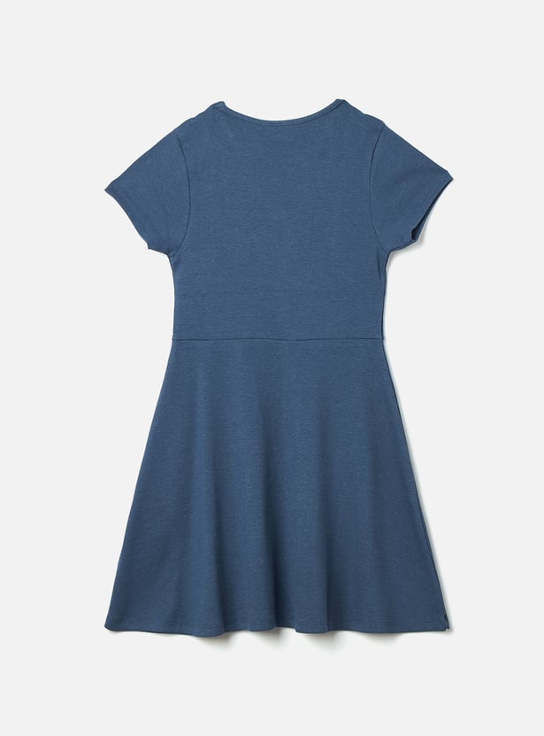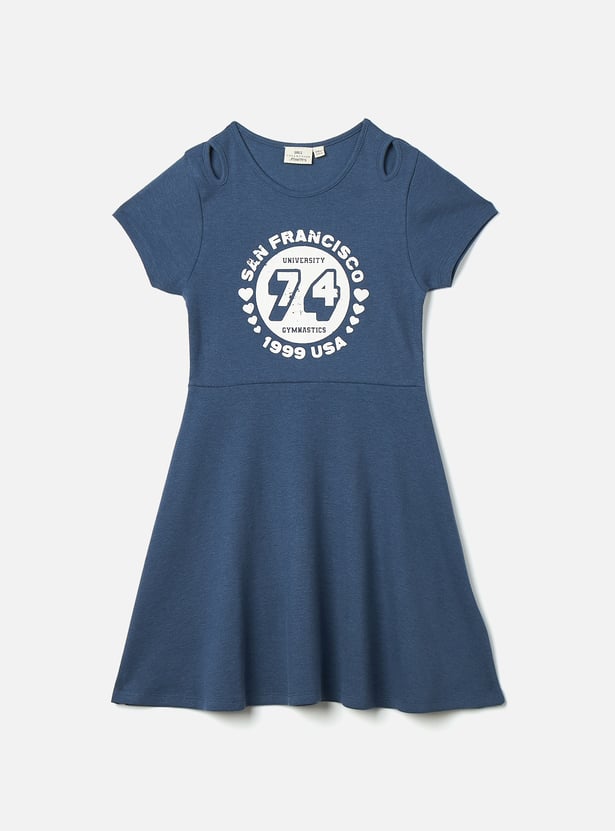 Juniors Printed A-Line Dress with Round Neck and Cut-Out Detail