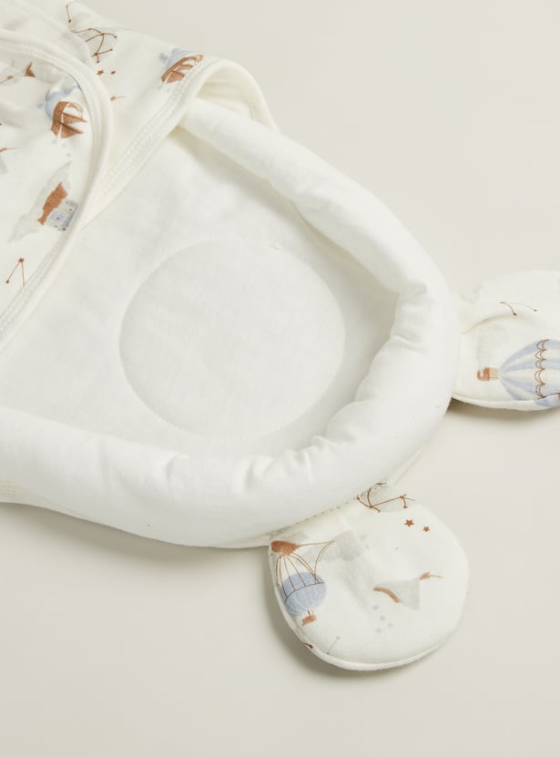 Keep your little one snug and secure with this swaddle wrap, designed for cosy comfort and adorable style. Featuring charming all-over prints and a matching pillow with cute ear appliques, this set adds an extra touch of sweetness to nap time. Made from soft, breathable fabric, it’s gentle on delicate baby skin and perfect for safe, comfortable swaddling.