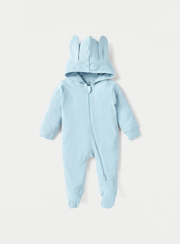 Your baby will sleep soundly in this cosy hooded sleepsuit. Made from breathable cotton fabric, this sleepsuit offers all-night comfort. The front zip ensures quick and easy dressing, while the adorable design adds a touch of charm to bedtime.