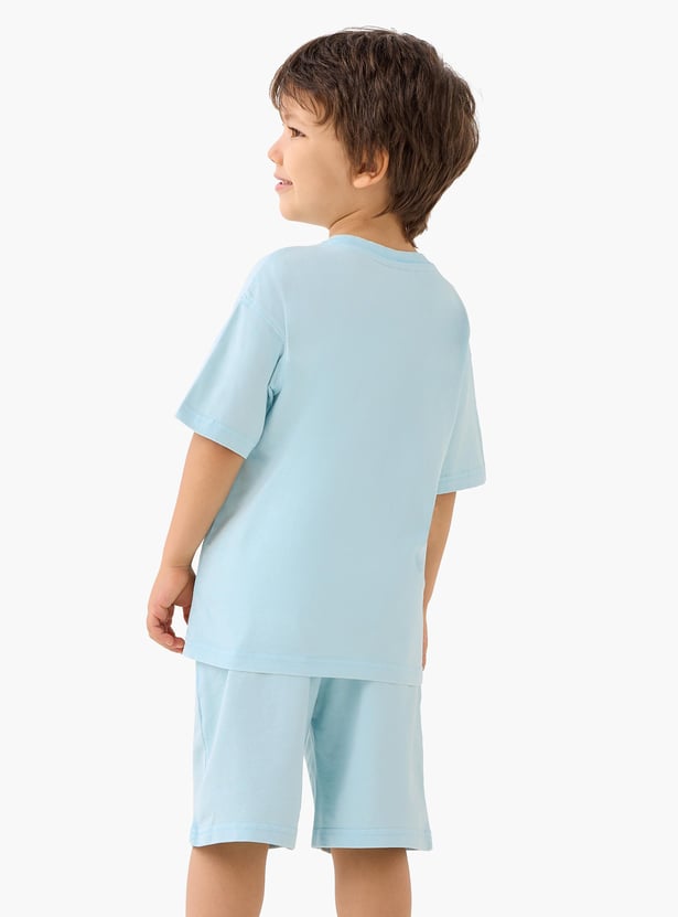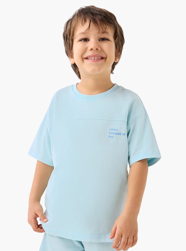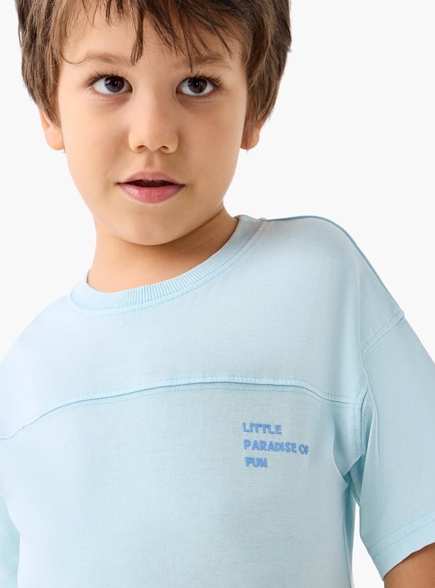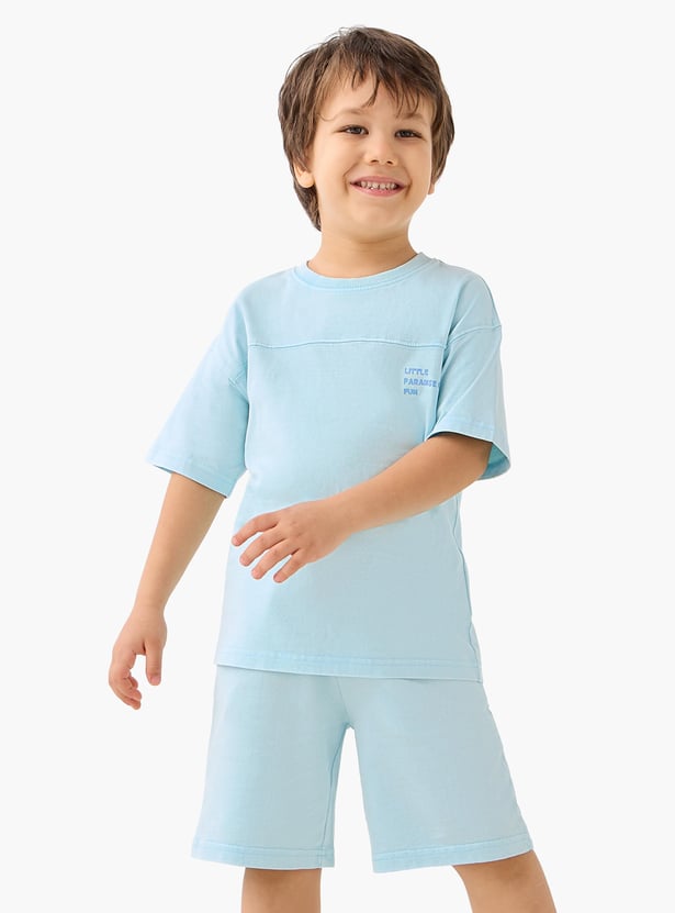 Juniors Slogan Print Crew Neck T-shirt and Shorts Set