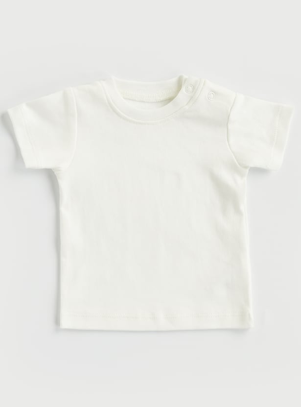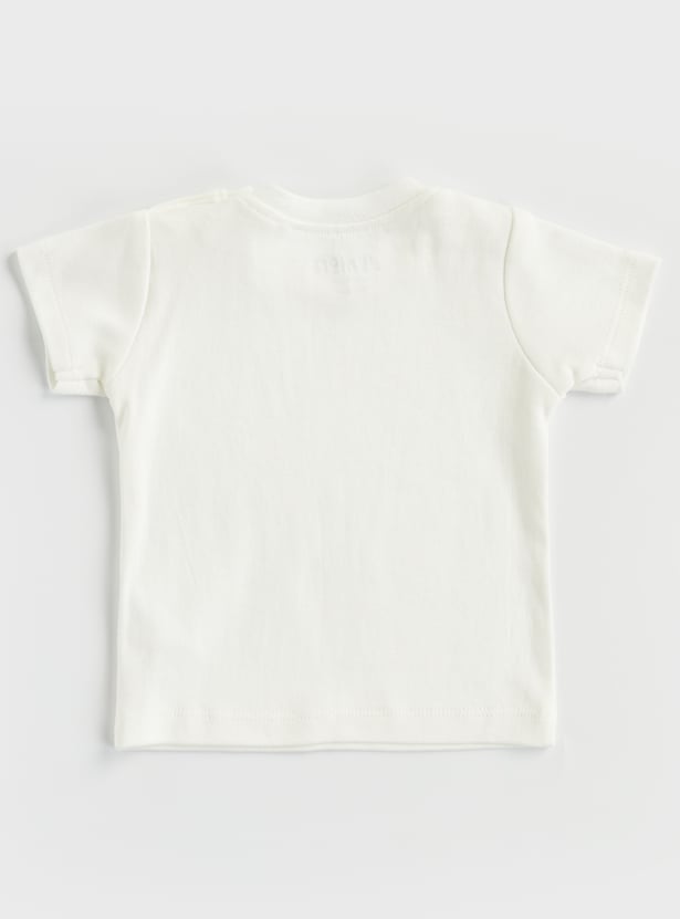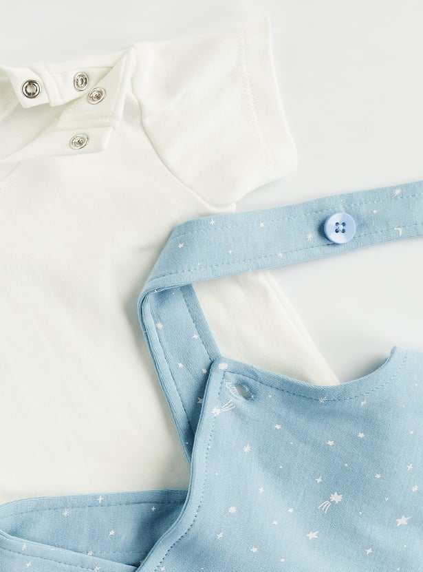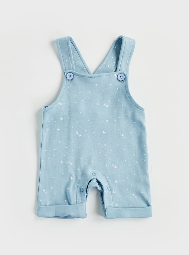 Sweet, simple, and endlessly charming, this dungaree set is designed for little moments that matter. The solid t-shirt features a classic crew neckline and short sleeves for everyday ease, layered with a printed dungaree that adds a playful touch. Adjustable straps and a relaxed silhouette make it ideal for comfort-filled days of crawling, exploring, and cuddles. Made from soft, breathable fabric that feels gentle and cosy on delicate skin.