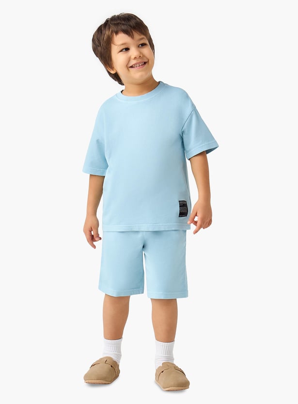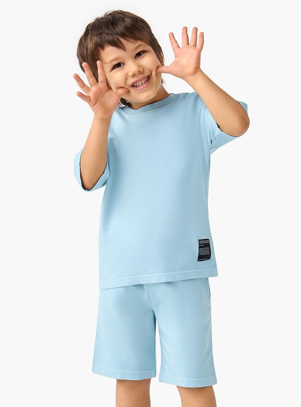 The set is a perfect combination of comfort and style for kids. This set includes a solid t-shirt with a classic crew neck and short sleeves, paired with matching shorts that feature an elastic waistband for a secure and comfortable fit. Made from soft, breathable fabric, this set is ideal for playtime, sports, or casual outings. It's a versatile addition to any child's wardrobe, ensuring they stay cool and stylish throughout the day.