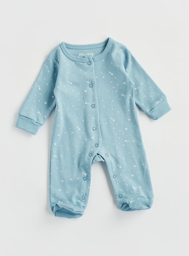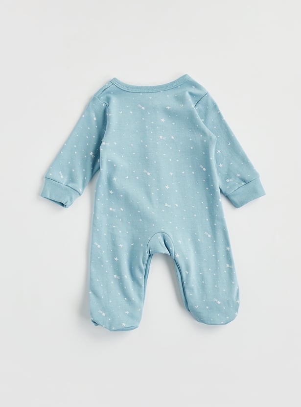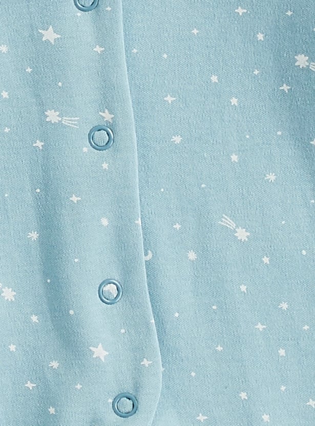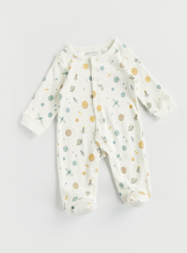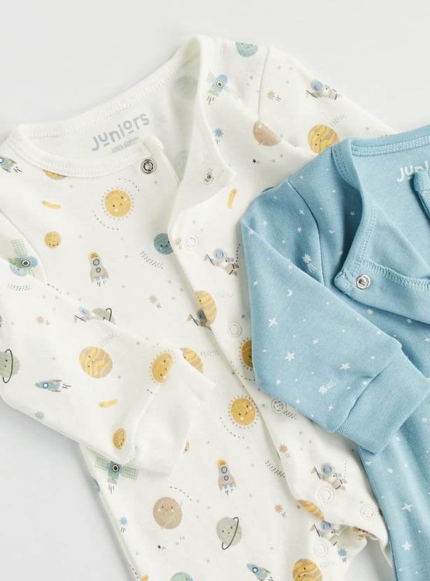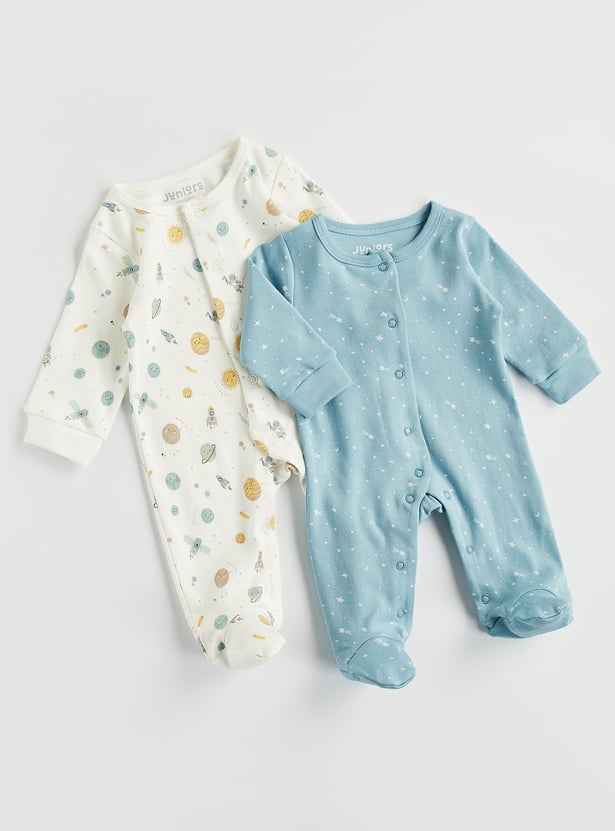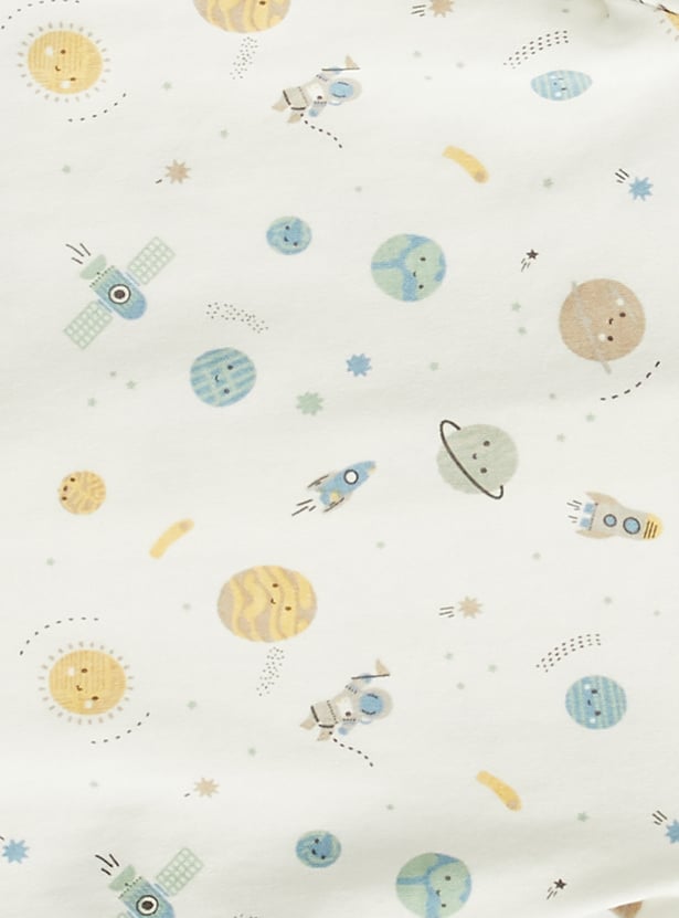 A delightful set of two space-printed sleepsuits, made for cosy nights and dreamy adventures. Designed with a crew neckline, full sleeves, and easy front button closures for quick changes. Crafted from soft, breathable fabric that keeps little ones snug, comfy, and happy all night long.