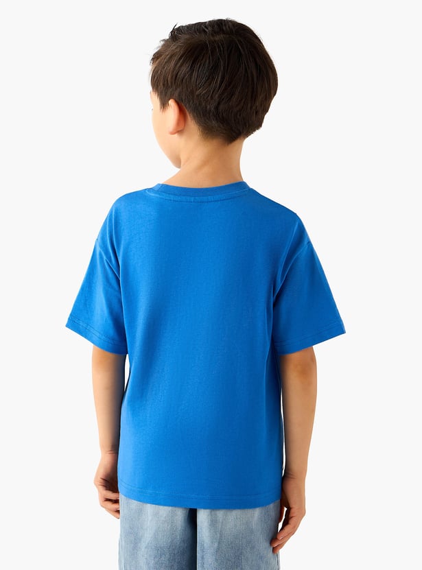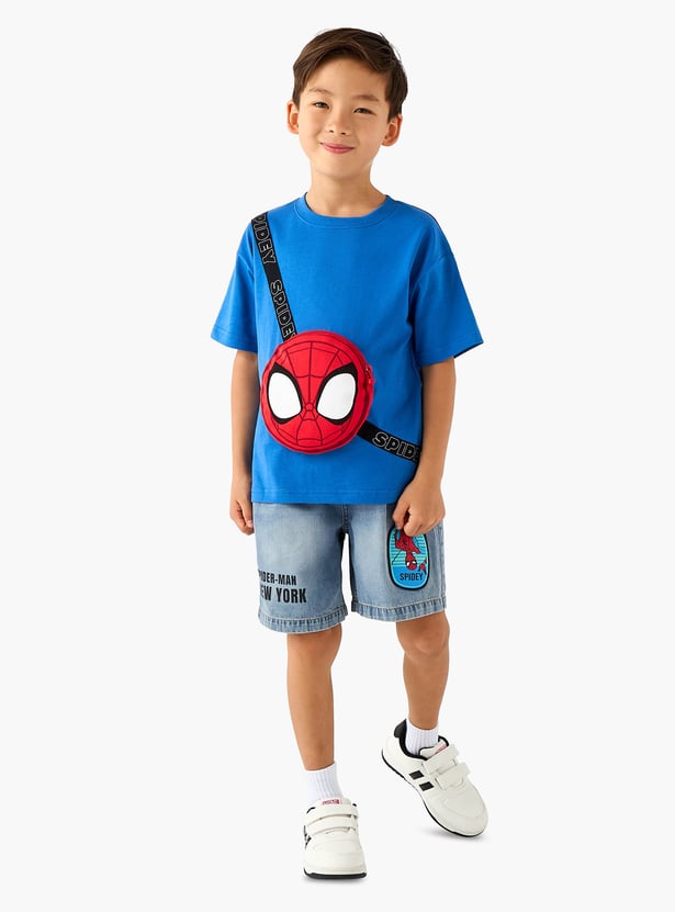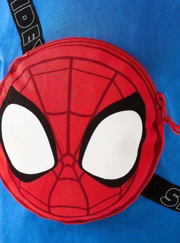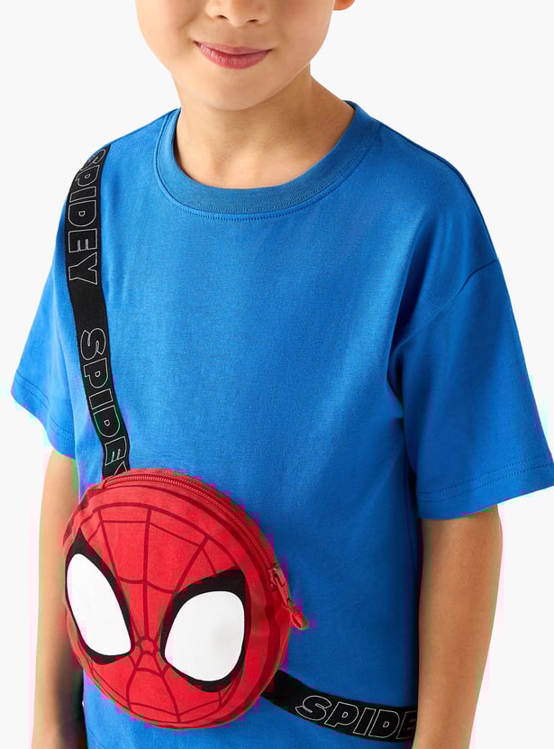 Swing into superhero style with this T-shirt. It features a crew neck and half sleeves with a Spider-Man bag detail. Crafted from soft, breathable fabric, this T-shirt ensures all-day comfort.