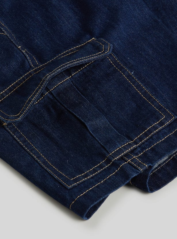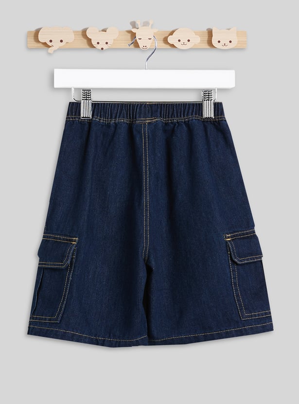 These denim cargo shorts offer a practical and comfortable style for everyday wear. Designed with a drawstring waist, washed finish, and cross pockets, they provide a secure and adjustable fit. The flap pockets add a classic cargo touch while offering extra storage for small essentials.