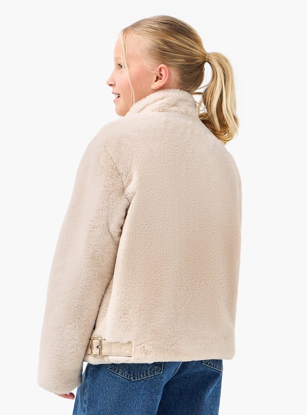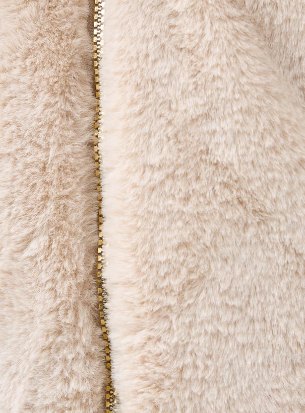 Juniors Plush Zip Through Jacket with Long Sleeves