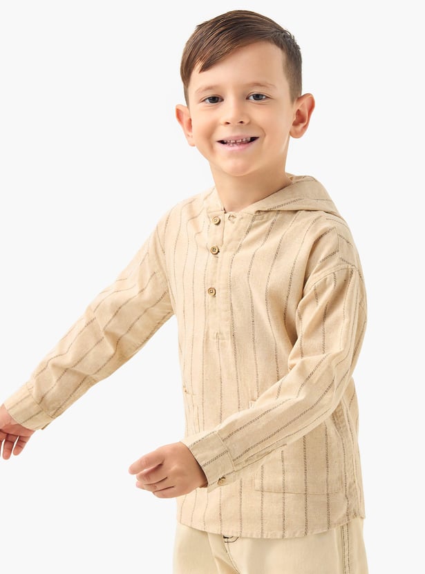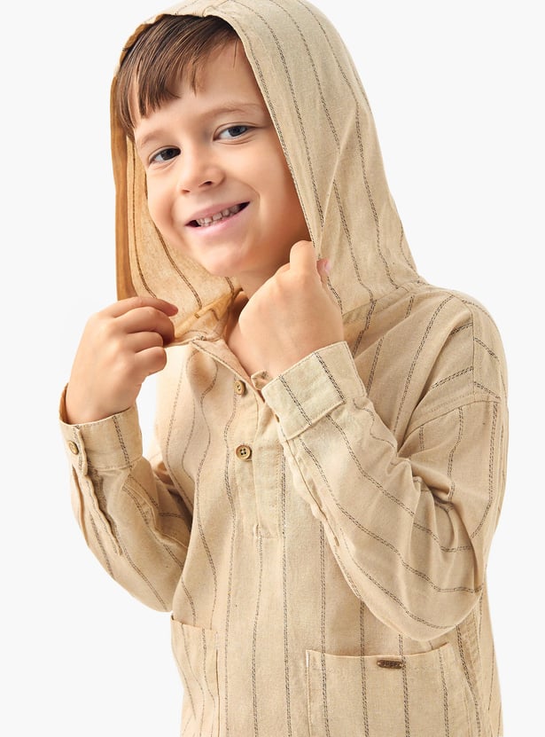 Juniors Striped Hooded Shirt with Long Sleeves