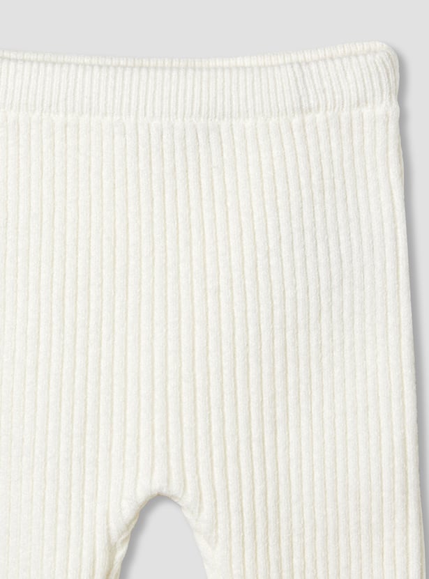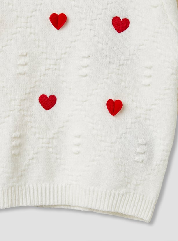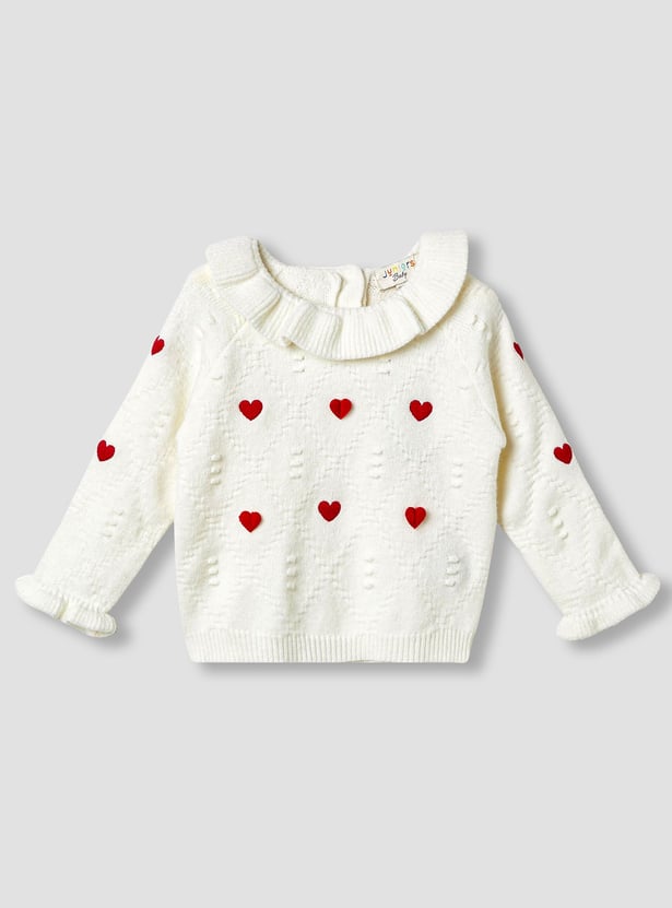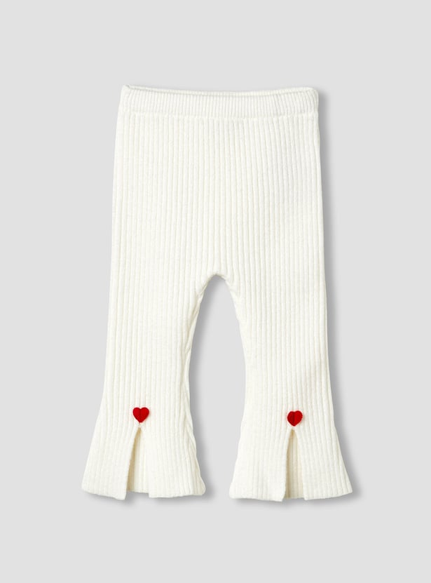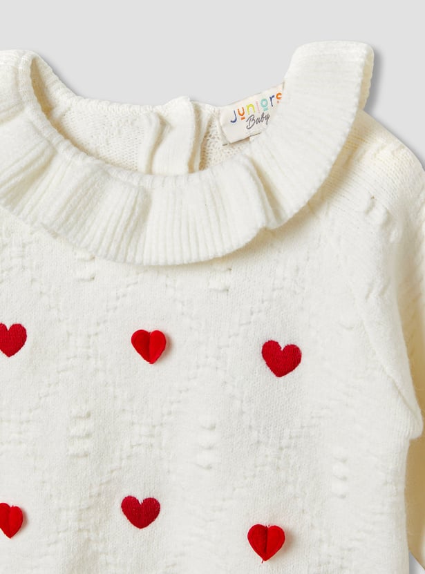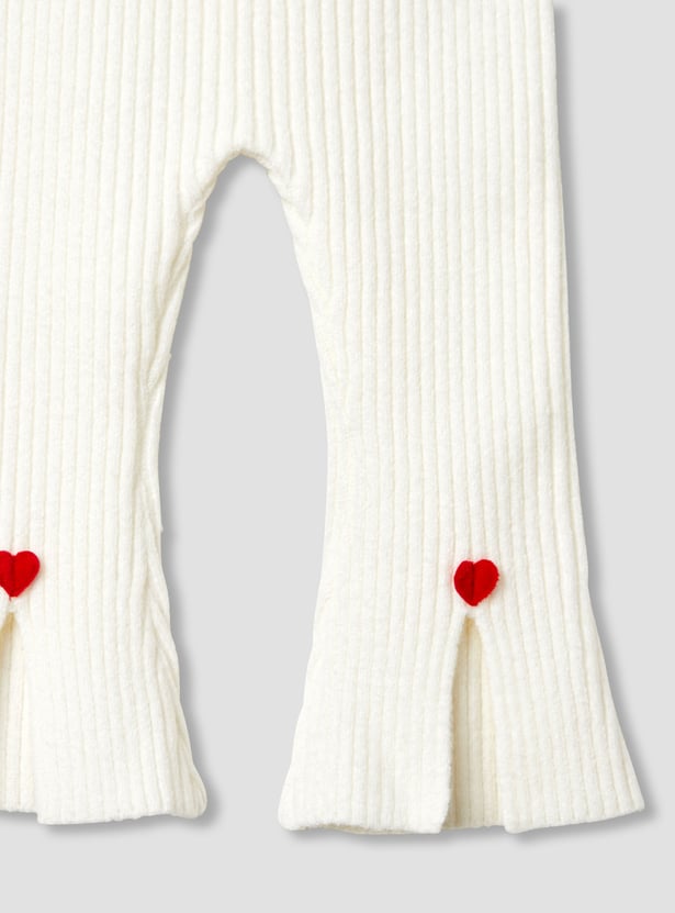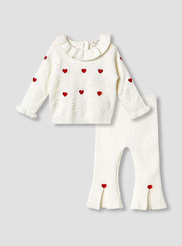 Dress your little one in this charming heart applique outfit, a delightful knitted two-piece set for girls. The long sleeve sweater features a sweet ruffle collar and textured knit, while the coordinating ribbed pants are finished with a contemporary slit hem. Crafted from a soft knit fabric for complete comfort, this adorable clothing set ensures your baby looks stylish and feels cosy throughout the day.