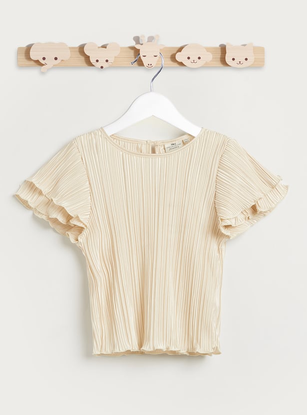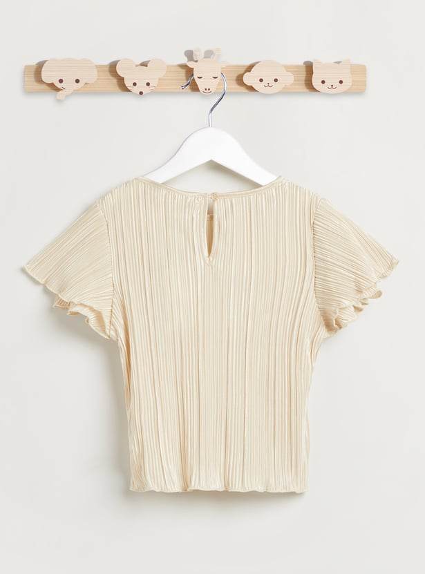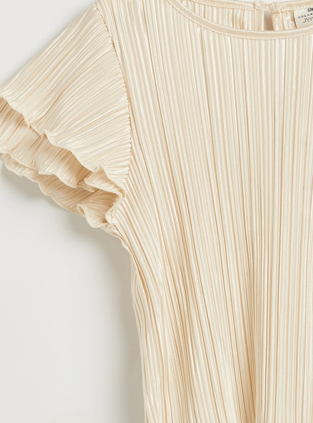 Juniors Pleated Flutter Sleeves T-shirt and Pants Set