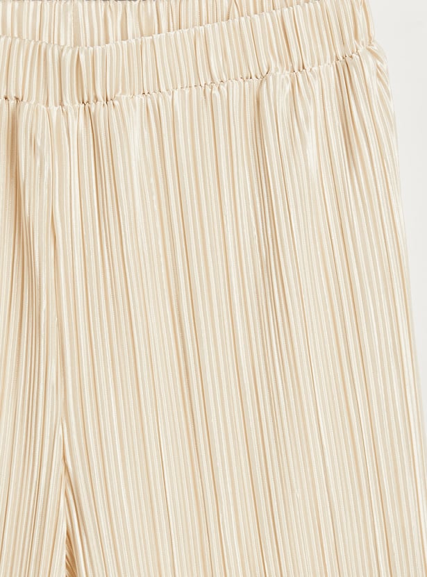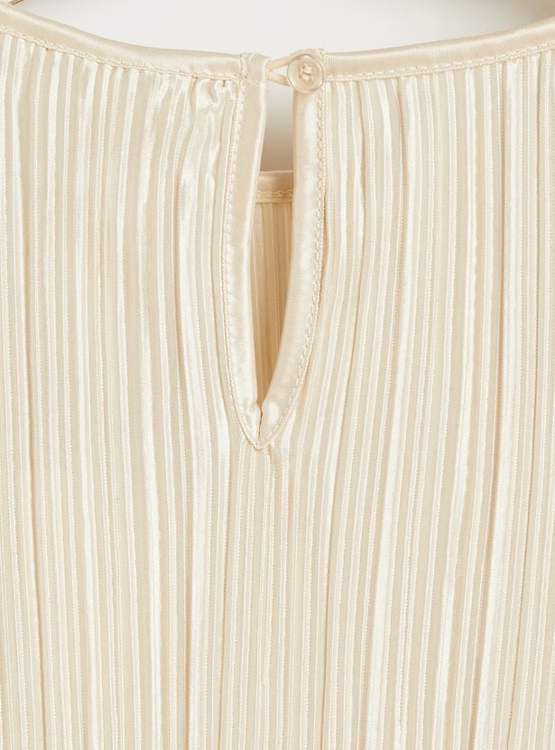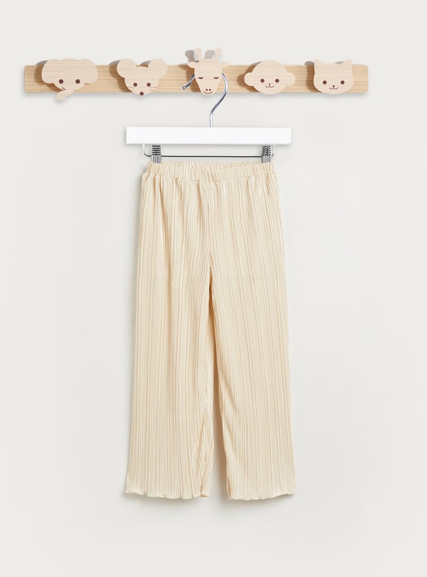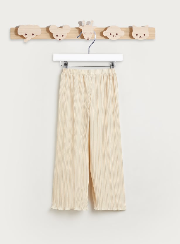 Add a playful twist to your child’s wardrobe with this charming pleated t-shirt and pants set. The top features soft flutter sleeves and an all-over pleated texture that brings a touch of elegance to everyday wear. Designed with a comfortable round neckline and a relaxed silhouette, it allows for easy movement and all-day comfort. The matching pants offer a coordinated look with a comfy elastic waistband, making dressing quick and fuss-free. Perfect for outings, playdates, or casual days at home, this set combines comfort with effortless style.