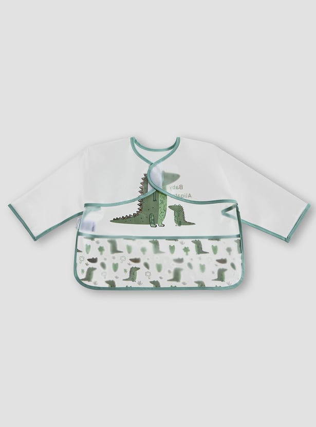 This long-sleeved apron bib protects clothing during feeding and messy play. The bib features a playful alligator print and a convenient closure. This practical bib allows you to keep your baby's clothes clean and dry, simplifying mealtimes. Pair it with other baby feeding accessories for a complete set.