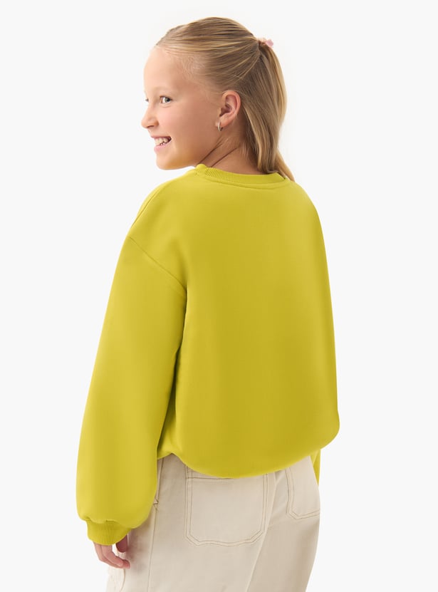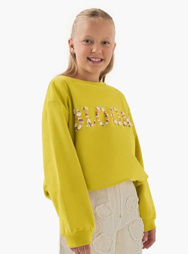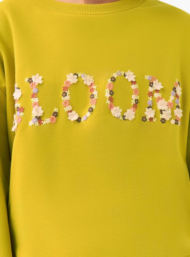 Juniors Floral Applique Slogan Sweatshirt with Long Sleeves