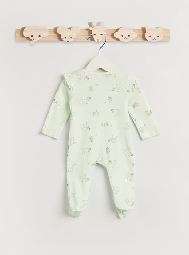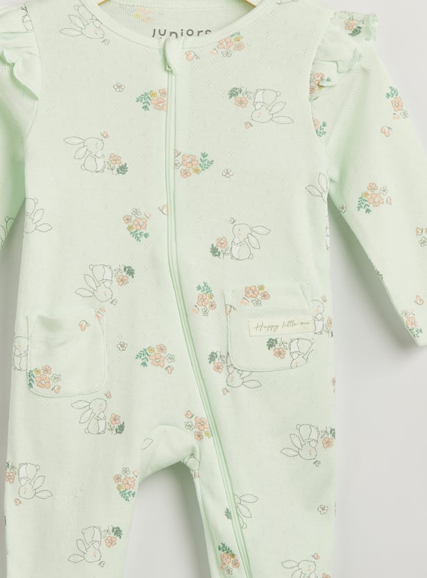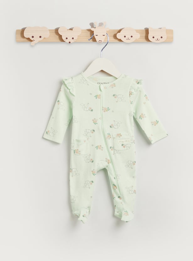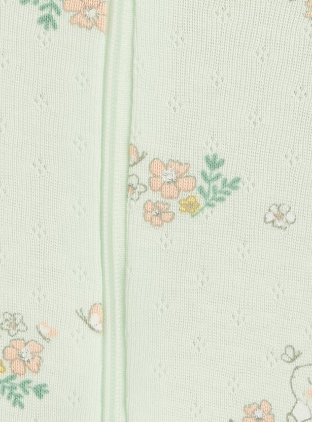 Juniors Floral Print Sleepsuit with Zip Closure and Pockets