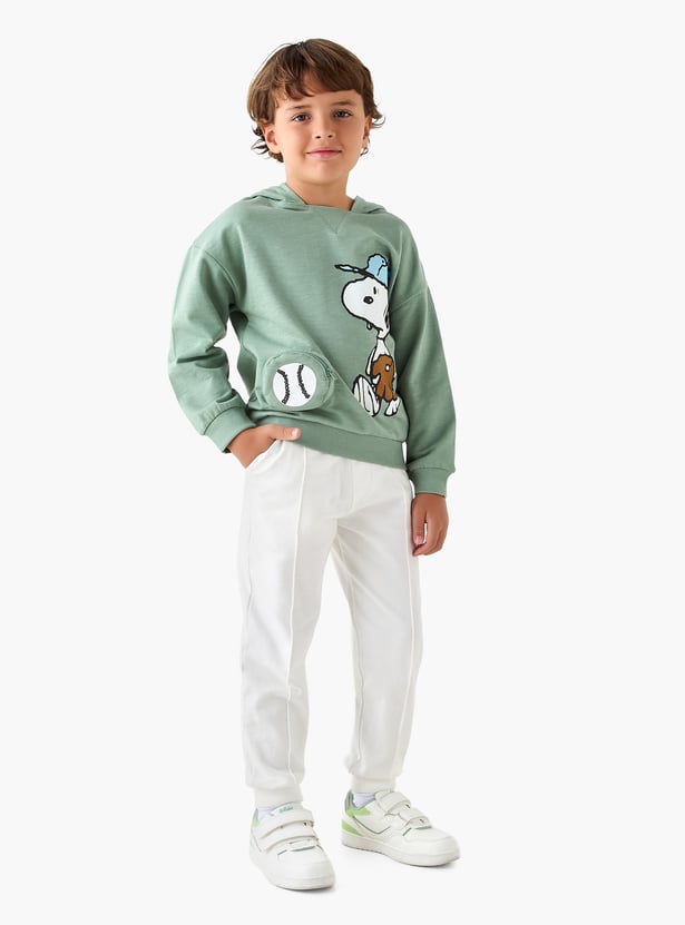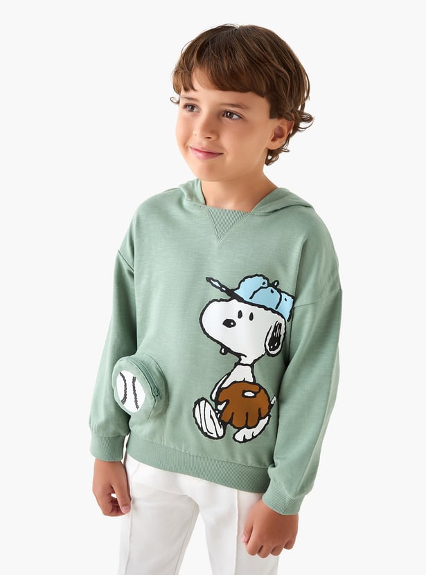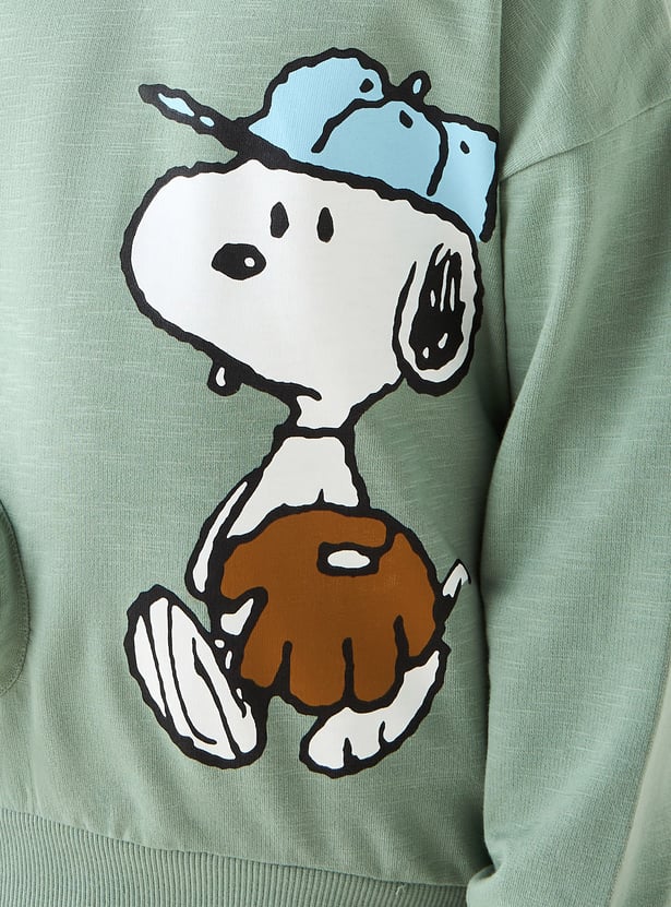 Juniors Snoopy Print Hooded Sweatshirt with Long Sleeves