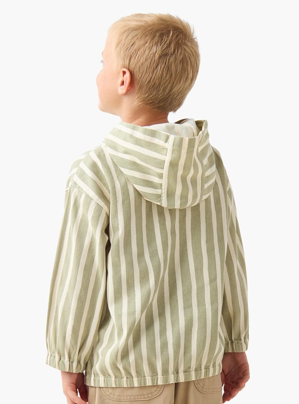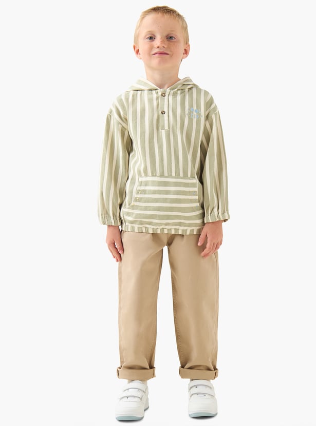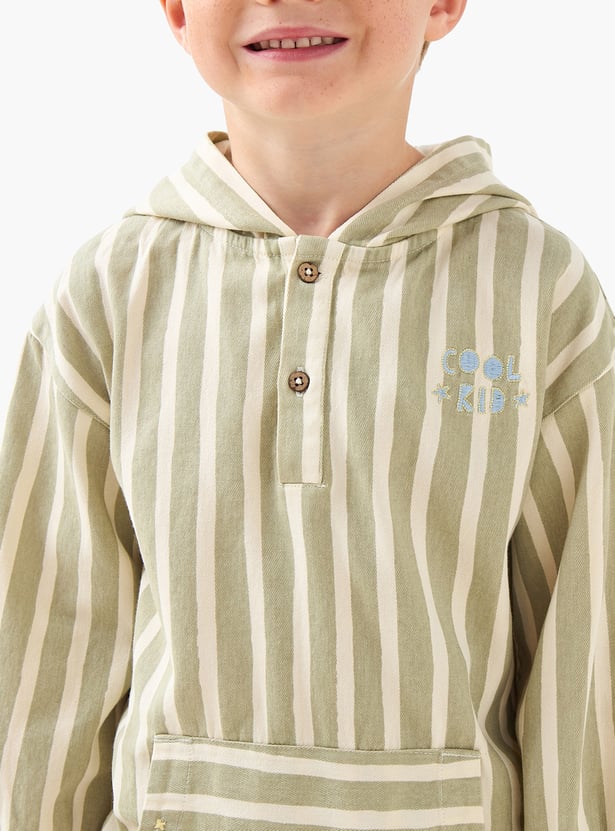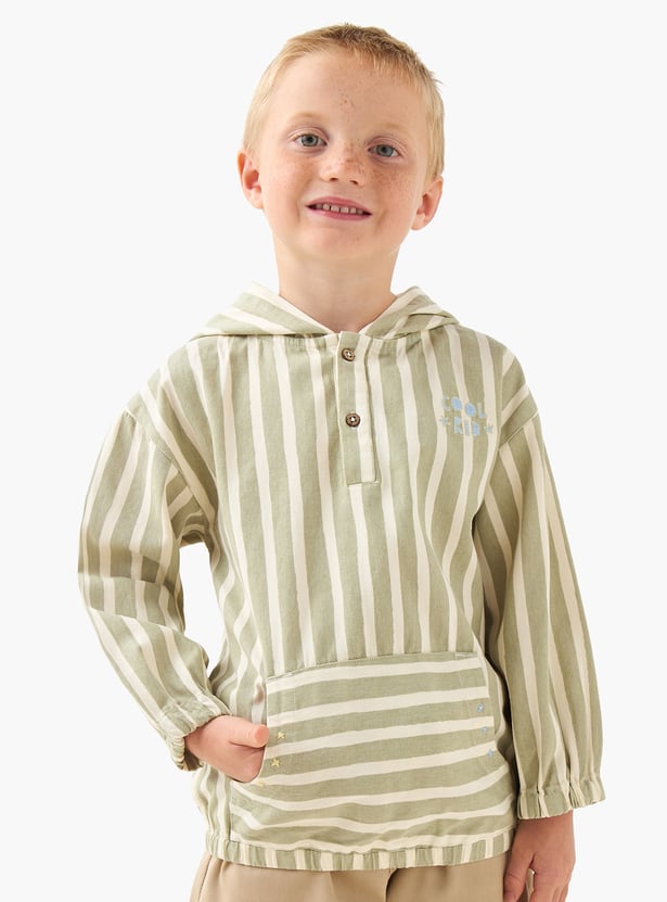 Discover this charming striped hoodie, a versatile addition to any young wardrobe. Designed with full sleeves and a handy kangaroo pocket, it blends comfort with playful style—perfect for layering on casual days.