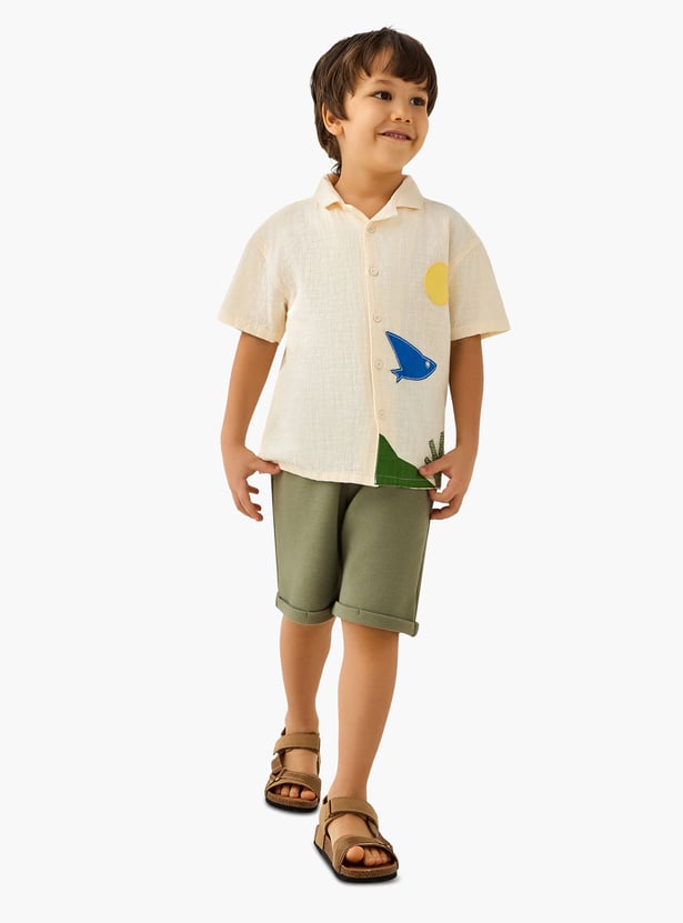 Get your little one vacation‑ready with these textured shorts. Featuring an elasticated waist, drawstring closure, and handy pockets, crafted from soft, durable fabric for all‑day ease.