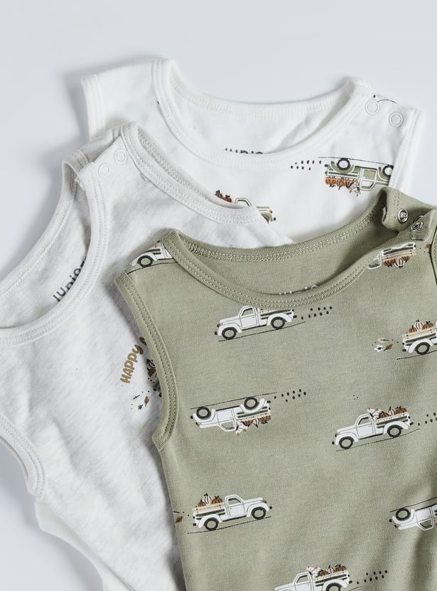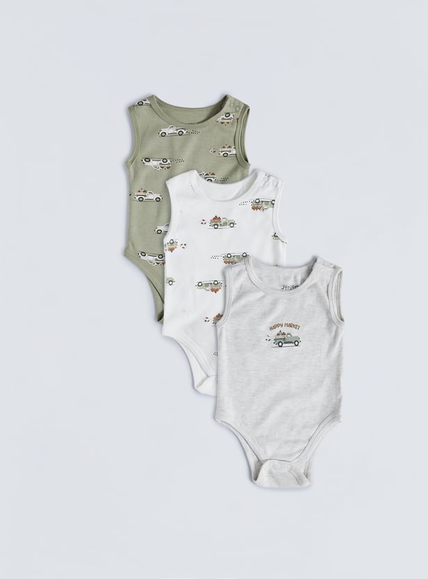 Juniors Vehicle Print Sleeveless Bodysuit - Set of 3