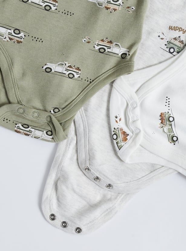 Make bedtime extra comfy with this set of 3 assorted bodysuits from Juniors. Crafted from breathable fabric, these bodysuits offer gentle comfort against your baby’s delicate skin. Each one features an easy snap button closure for quick changes. The vehicle prints add a fun and cheerful touch, making this pack both practical and adorable for everyday wear or gifting.