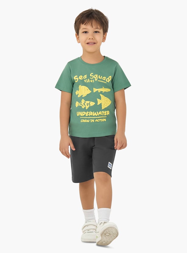 These comfortable knit shorts for boys feature a practical drawstring waist, ensuring a secure and adjustable fit for active youngsters. The versatile design allows for easy pairing with various tops, creating stylish and functional outfits for any casual occasion. A charming applique detail at the hem of one leg adds a playful touch to the look. A perfect addition to any boy’s wardrobe, these shorts offer durability and ease of movement, and are crafted from soft, breathable fabric for all-day comfort during play or relaxation.