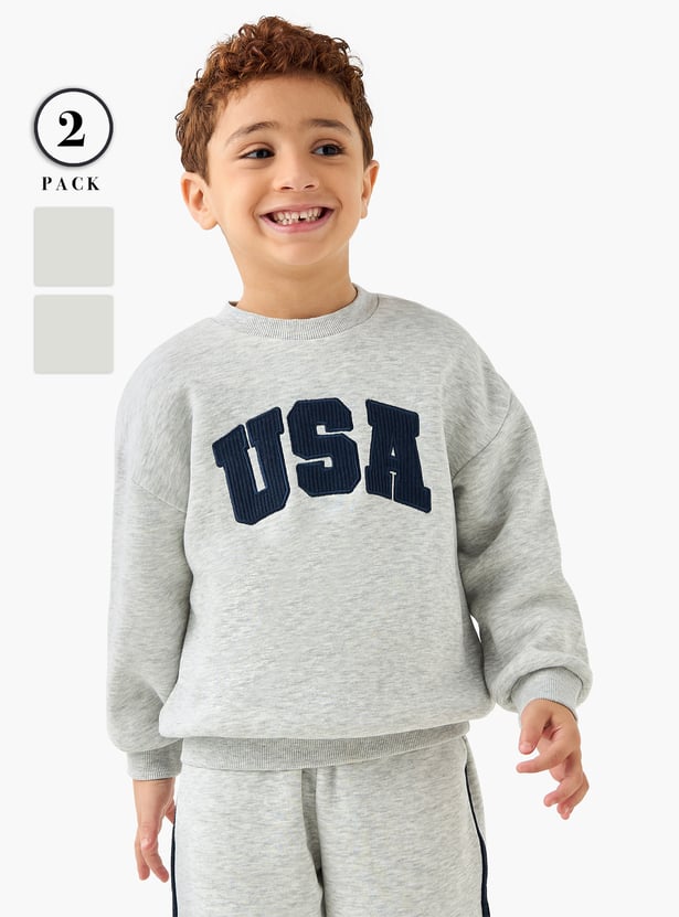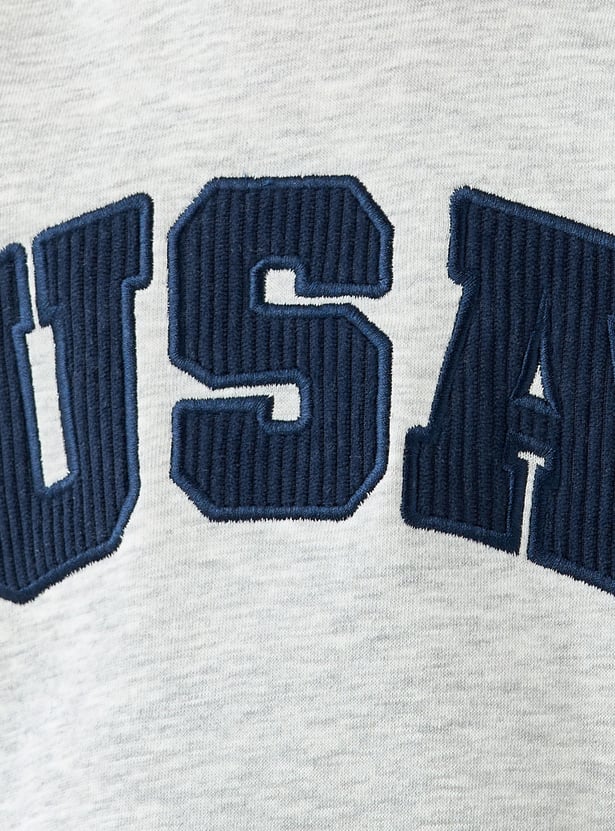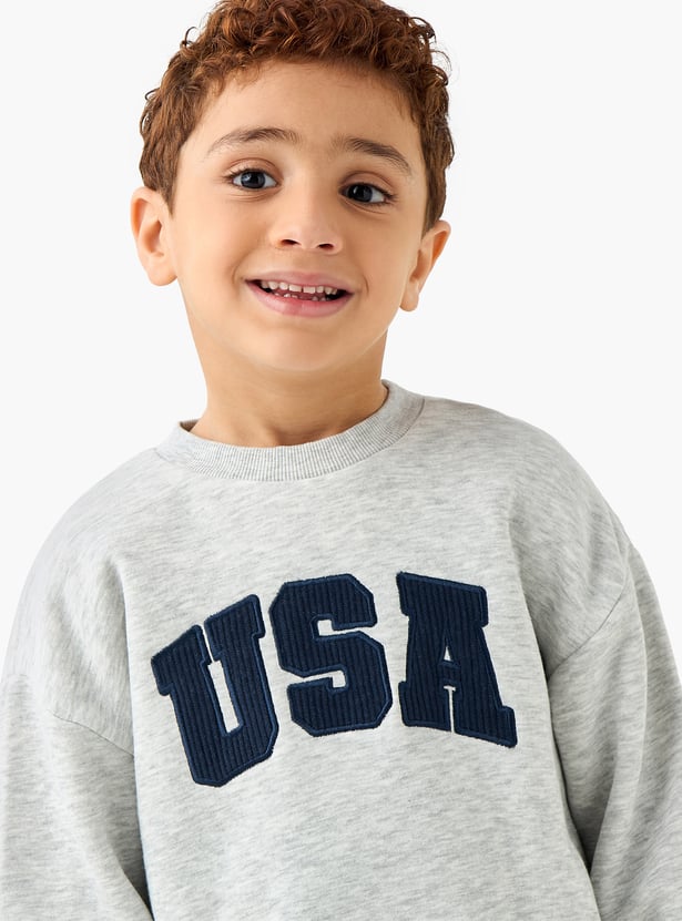 This comfortable set features a sweatshirt and joggers, perfect for everyday wear. The sweatshirt boasts a stylish USA applique design, adding a touch of sporty flair. Elasticated cuffs and an adjustable drawstring waist on the joggers offer a comfortable and secure fit. This versatile set is ideal for playtime, casual outings, or relaxing at home.