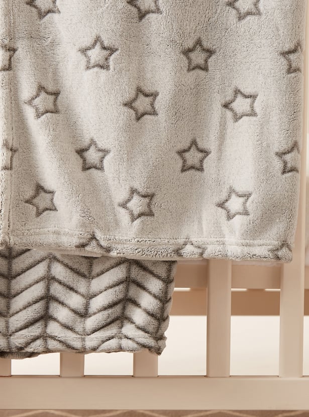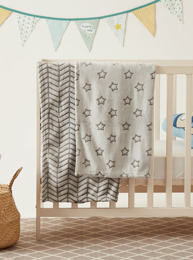 Showcasing different designs, ensure your little one feels cocooned with this set of two blankets. It will lend them a warm and cosy good night's sleep. The coral fleece blanket is designed in a furry texture that adds extra comfort. Made from soft material, the blanket is sure to be gentle on his skin.