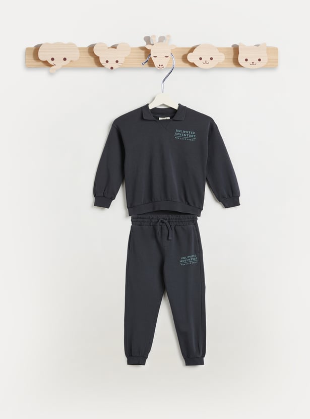 Elevate your casual wardrobe with this stylish printed T-shirt and joggers set. The T-shirt features a trendy Johnny collar and full sleeves, offering a refined twist on everyday comfort. Paired with matching joggers designed with a drawstring closure and functional pockets, this set blends fashion with practicality