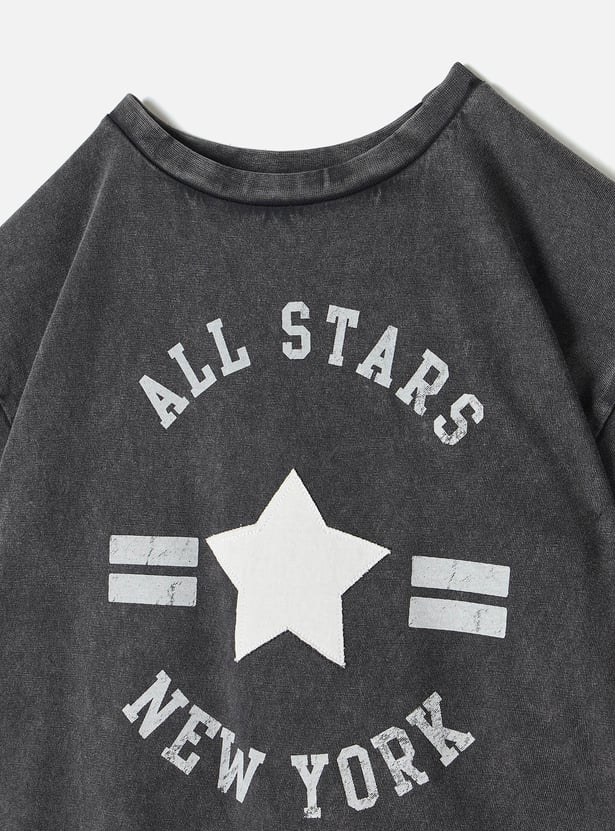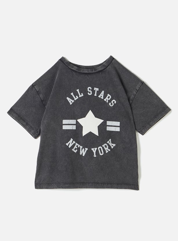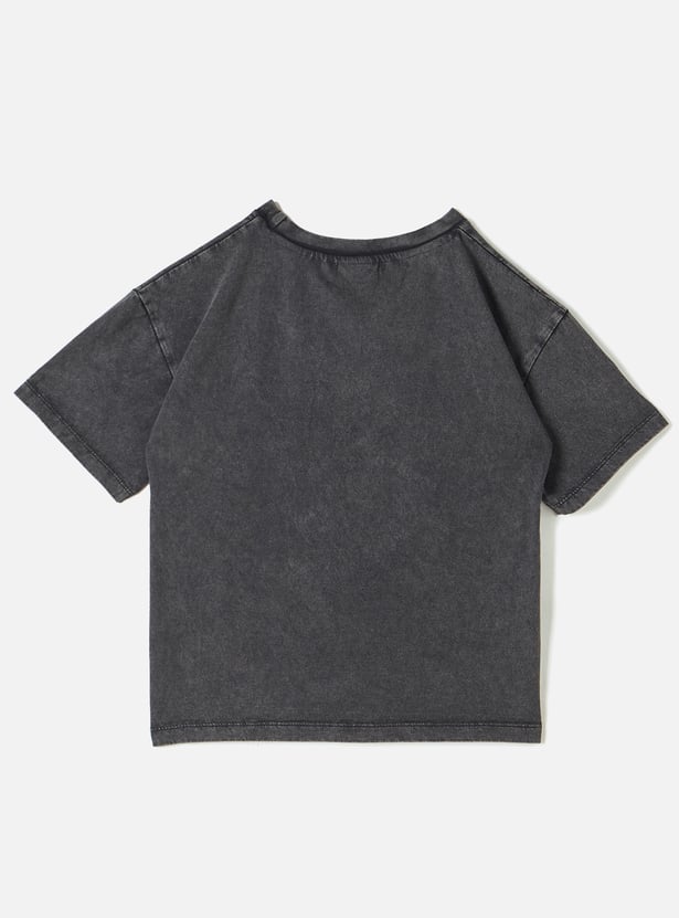 Juniors Printed T-shirt with Crew Neck and Short Sleeves