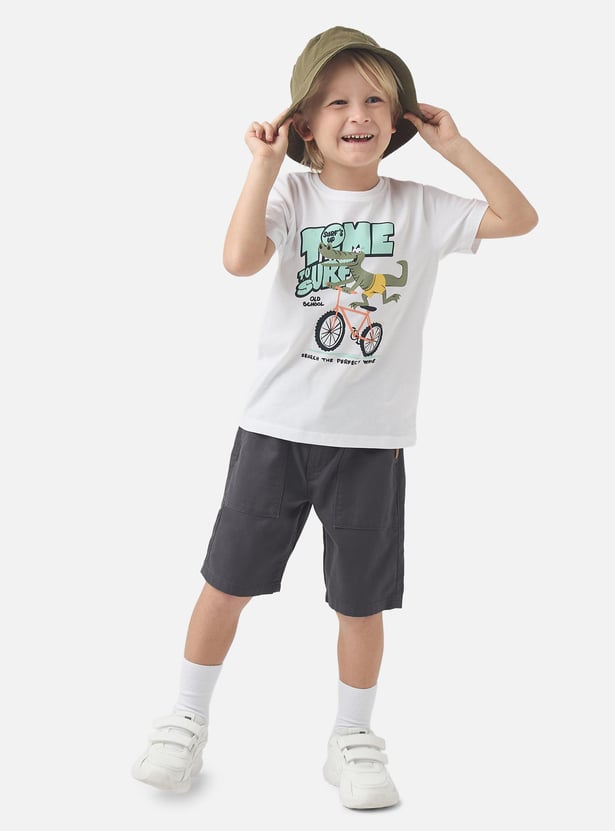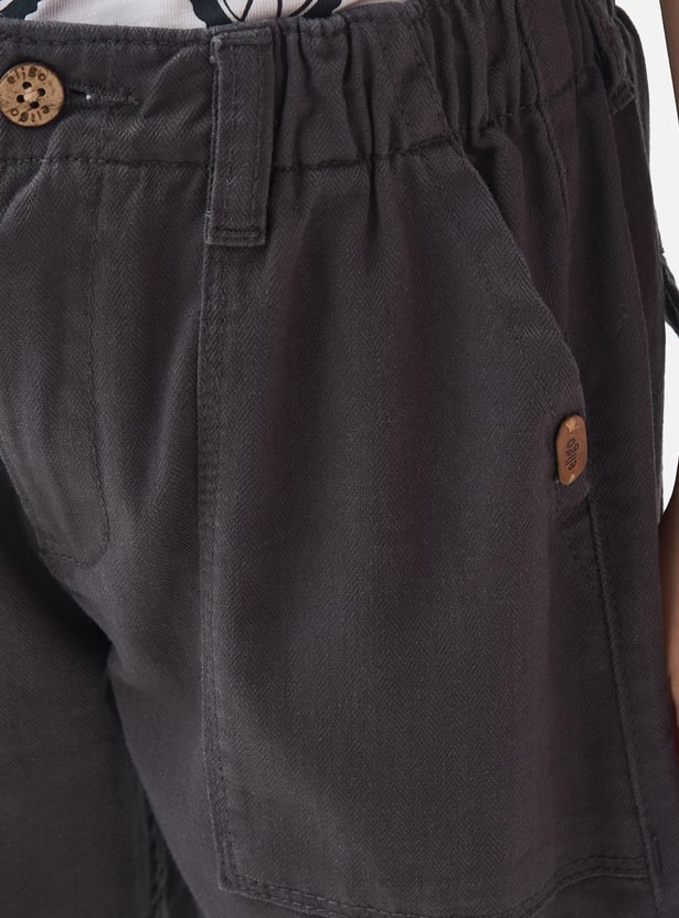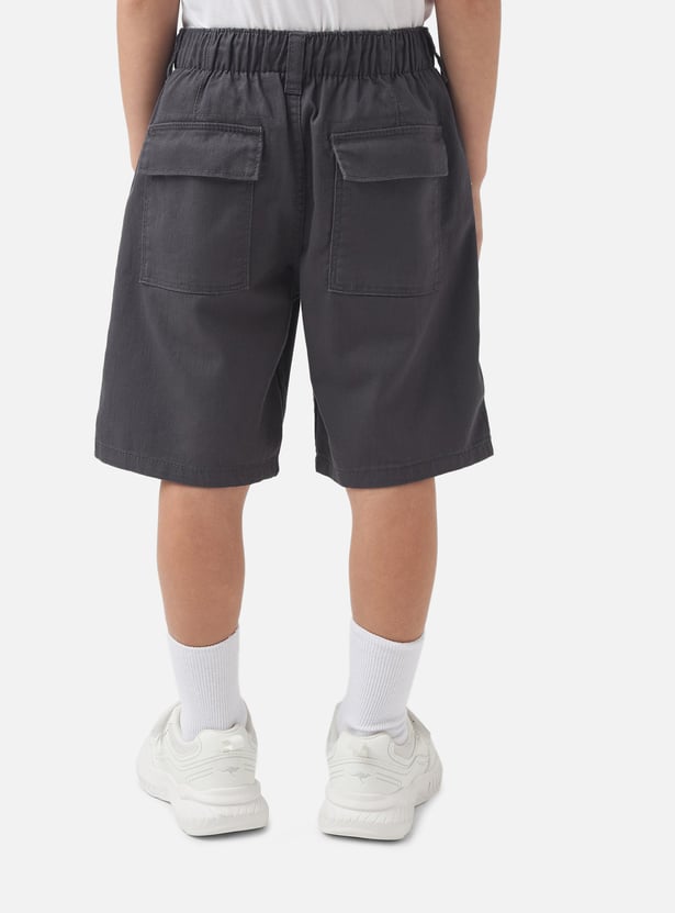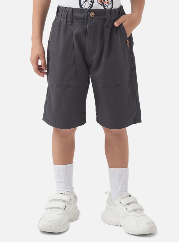 Juniors Solid Shorts with Button Closure and Pockets