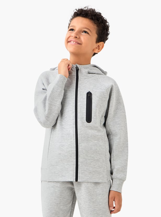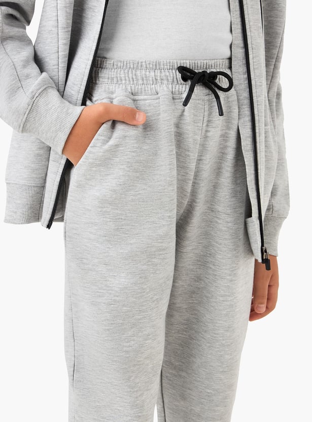 Juniors Solid Zip Through Hoodie and Joggers Set