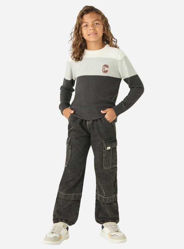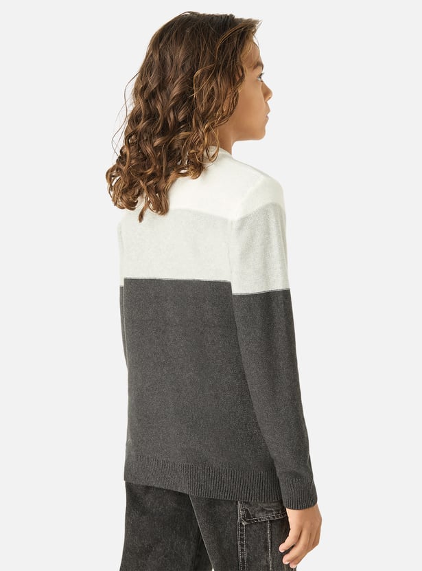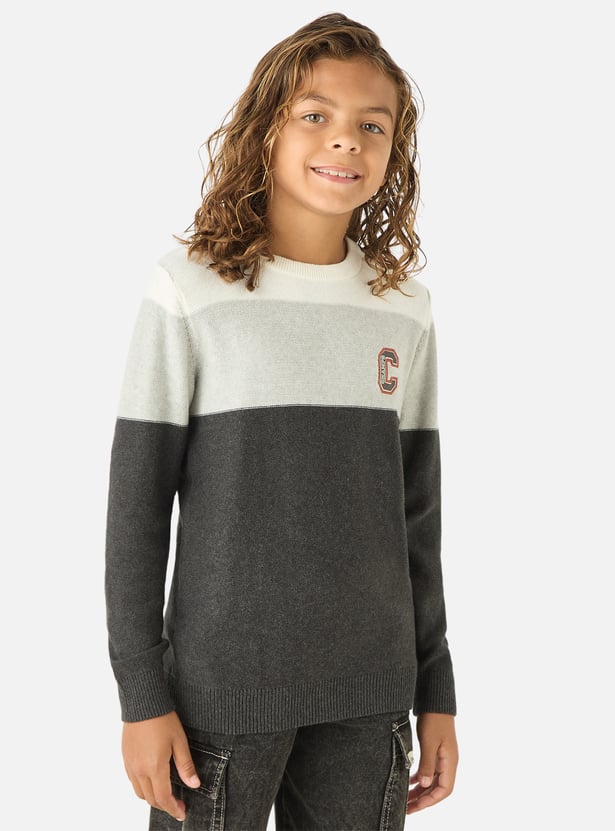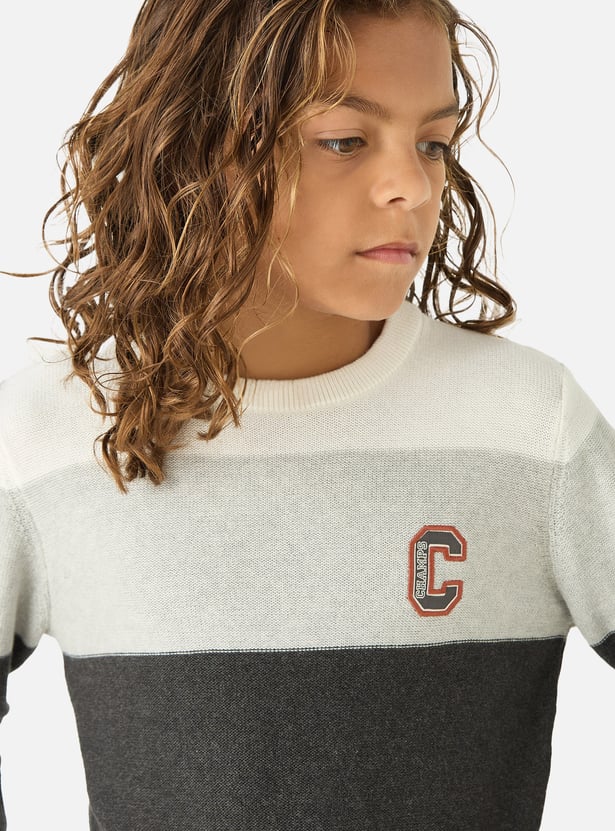 Juniors Striped Pullover with Crew Neck and Long Sleeves
