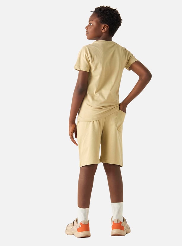 This three-piece set is perfect for older boys who want to look stylish and put-together. The set includes two t-shirts and a pair of shorts all made from soft and comfortable cotton. The t-shirt features a fun and trendy print, while the shorts are perfect for everyday wear.