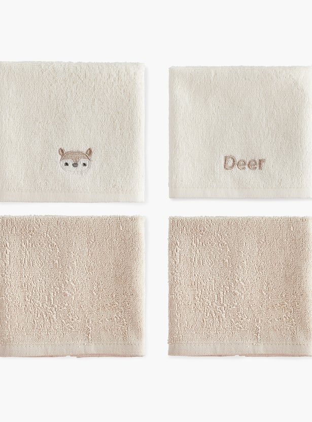 Juniors 4-Piece Embroidered Wash Cloth Set - 26x26 cm